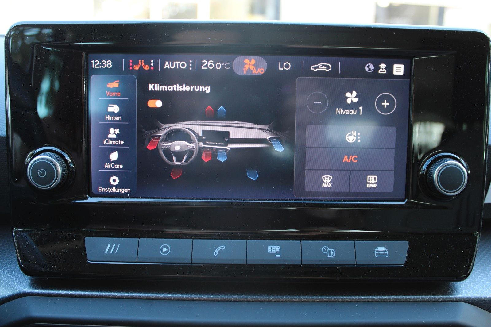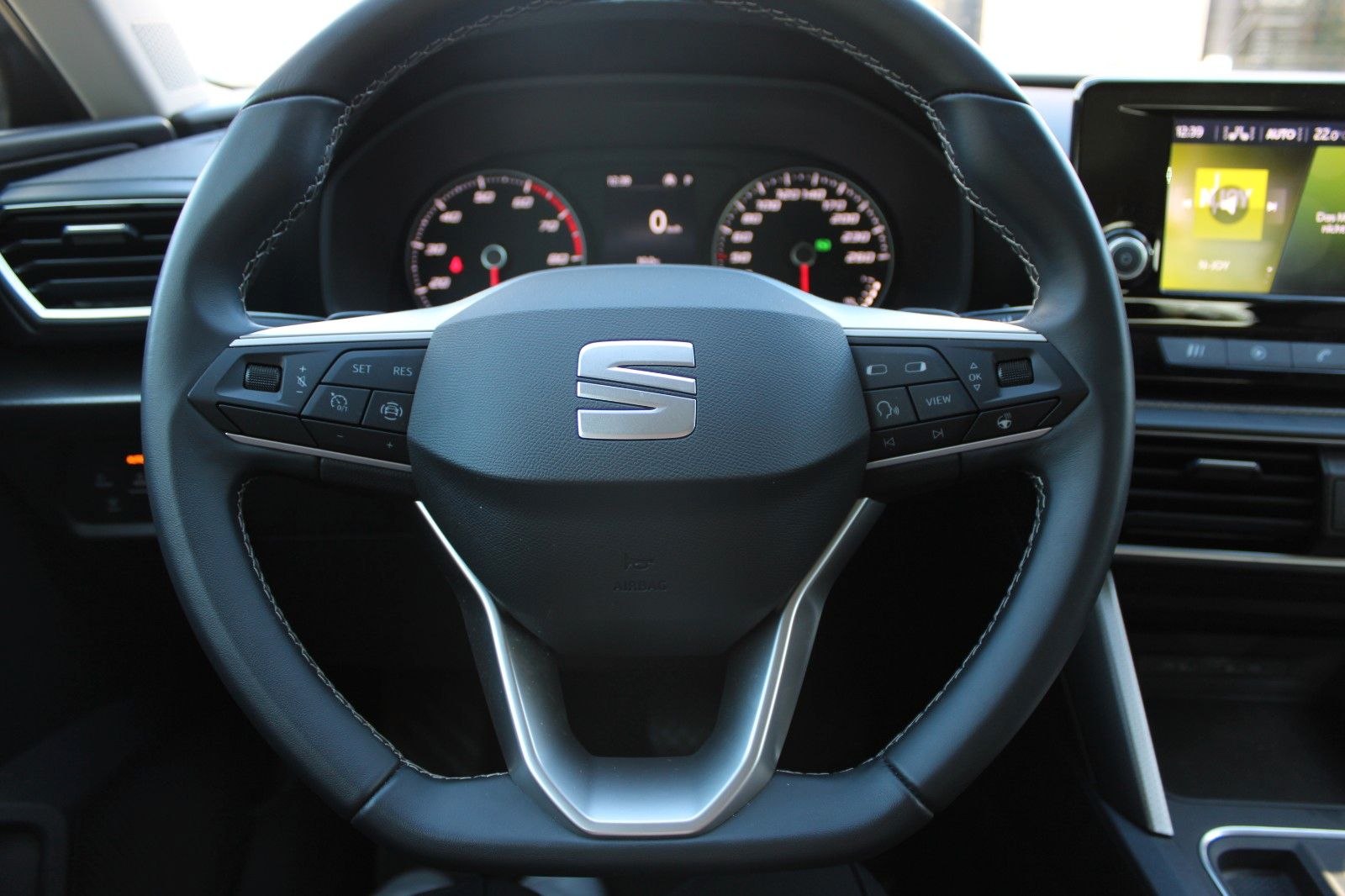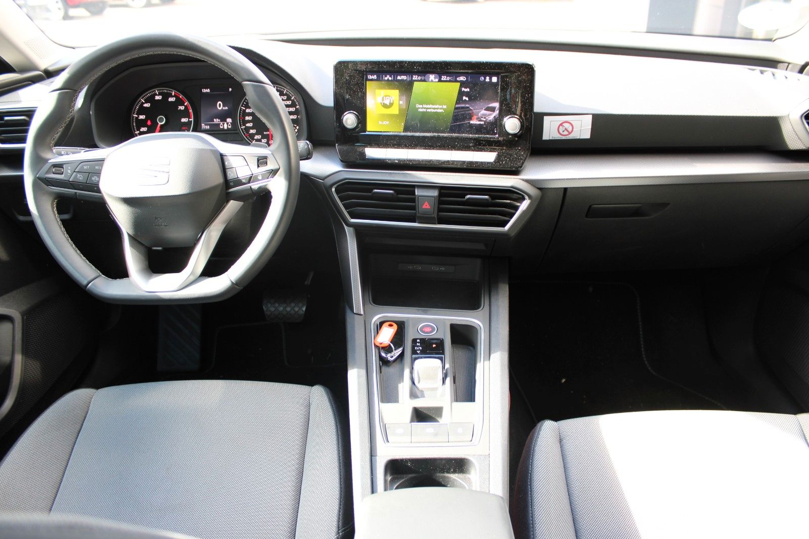 6 Lautsprecher, Ablagetasche an Vordersitzlehnen, Airbag Beifahrerseite abschaltbar, Airbag Fahrer-/Beifahrerseite, Antriebs-Schlupfregelung (ASR), Außenspiegel Wagenfarbe, Blinkleuchten LED in Außenspiegel integriert, Bluetooth-Schnittstelle mit Freisprecheinrichtung integriert, Bordcomputer, Dachreling, Durchladeeinrichtung (Mittelarmlehne hinten), Einparkhilfe hinten, Elektron. Querdifferentialsperre (XDS), Fahrassistenz-System: Müdigkeitserkennung, Fahrassistenz-System: Spurhalteassistent, Fahrassistenz-System: Umfeldbeobachtungssystem (Front assist) mit City-Notbremsfunktion, Fensterheber elektrisch vorn + hinten mit Komfortschaltung, Gepäckraumabdeckung / Rollo, Geschwindigkeits-Regelanlage (Tempomat) inkl. Geschw.-Begrenzer, Handschuhfach beleuchtet, Heckleuchten Voll-LED mit Lichtband (Infinite Light), Isofix-Aufnahmen für Kindersitz, Karosserie: 5-türig, Kofferraumbeleuchtung, Kopf-Airbag-System, Laderaumboden variabel und herausnehmbar, Lendenwirbelstütze Sitz vorn links, verstellbar, Lenkrad (Sport/Leder) mit Multifunktion, Mild-Hybrid 110 kW (Motor 1,5 Ltr. - 110 kW eTSI ACT), Mobile Online Dienste Seat Connect, Nebelscheinwerfer LED mit Abbiegelicht, Notrufsystem, Otto-Partikelfilter (OPF), Parkbremse elektrisch mit Auto-Hold-Funktion, Radioempfang digital (DAB+), Reifen-Reparaturset, Reifenkontroll-Anzeige, Rücksitzlehne geteilt/klappbar (1/3-2/3), Rücksitzlehnen umklappbar mit Fernentriegelung im Kofferraum, Schadstoffarm nach Abgasnorm Euro 6d, Schalt-/Wählhebelgriff Leder, Scheinwerfer LED, SEAT Media-System Plus, Seitenairbag, Seitenairbag vorn mitte (Central Airbag), Sitz vorn links höhenverstellbar, Sitz vorn rechts höhenverstellbar, Sitzbezug / Polsterung: Stoff, Sonnenblende links mit Spiegel (beleuchtet), Sonnenblende rechts mit Spiegel (beleuchtet), Start/Stop-Anlage, Steckdose (12V-Anschluß) im Koffer-/Laderaum, Steckdose (12V-Anschluß) vorn, USB-Schnittstelle vorn (2-fach, Typ C), Verzurrösen Koffer-/Laderaum, Warnanlage für Sicherheitsgurt-System, Wärmeschutzverglasung, Zentralverriegelung / Startanlage Keyless Go (Start-Stop-Knopf)
