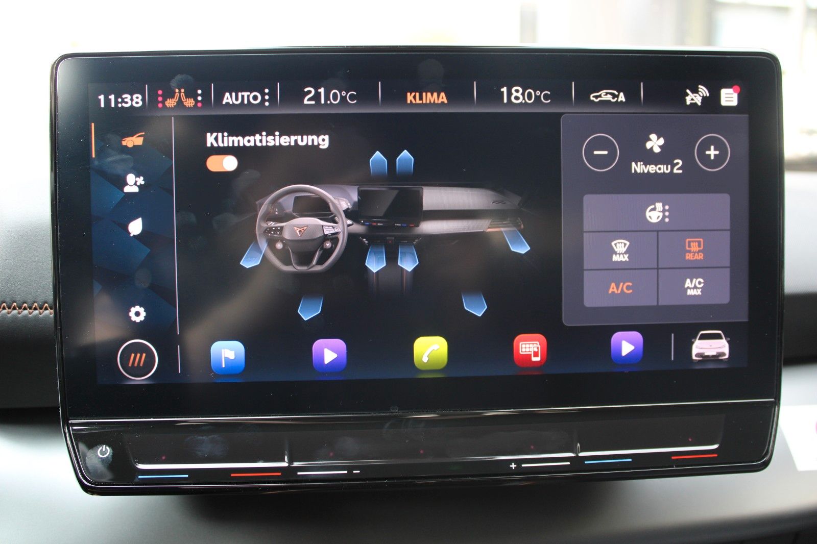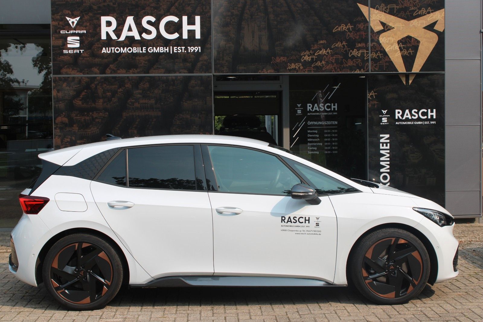 Airbag Beifahrerseite abschaltbar, Airbag Fahrer-/Beifahrerseite, Akustischer Fußgängerschutz, Außensound (e-sound / AVAS), Ambiente-Beleuchtung LED, Antriebs-Schlupfregelung (ASR), Außenspiegel elektr. verstell-, heiz- und anklappbar mit Spiegelabsenkung und Welcome Light, Blinkleuchten LED in Außenspiegel integriert, Bluetooth-Schnittstelle mit Freisprecheinrichtung integriert, Dachhimmel schwarz, Einparkhilfe vorn und hinten, Elektromotor 170 kW (cont. 70 kW), Fahrassistenz-System: Fahrprofilauswahl (CUPRA Drive Profile), Fensterheber elektrisch vorn + hinten mit Komfortschaltung, Fußraumbeleuchtung LED, Heckleuchten Voll-LED mit Lichtband (Infinite Light), Heckspoiler Wagenfarbe (Dachspoiler), HV-Batterie 82 kWh, Innenspiegel mit Abblendautomatik, Isofix-Aufnahmen für Kindersitz an Beifahrersitz und Rücksitz (inkl. i-Size-Kindersitze), Karosserie: 5-türig, Klimaanlage Climatronic 2-Zonen, Kombiinstrument digital (virtual cockpit), Kopf-Airbag-System, Ladekabel mit Typ 2-Stecker (Mode 3), Notrufsystem, Parkbremse elektrisch, Pedale Aluminium-Design, Rücksitzlehne geteilt/klappbar (1/3-2/3), Schnellladevorrichtung (CCS-Ladedose), Seitenairbag, Seitenairbag vorn mitte (Central Airbag), Sitz vorn links höhenverstellbar, Sonnenblende links mit Spiegel (beleuchtet), Sonnenblende rechts mit Spiegel (beleuchtet), Sport-Schalensitze vorn mit integrierten Kopfstützen, USB-Ladeanschlüsse (2-fach, Typ C) für 2.Sitzreihe, Warnanlage für Sicherheitsgurt-System, Wärmeschutzverglasung