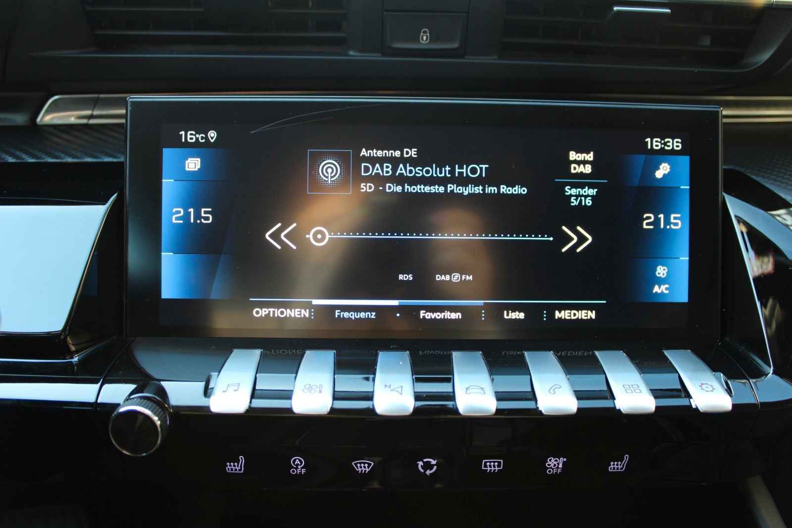 Airbag Beifahrerseite abschaltbar, Airbag Fahrer-/Beifahrerseite, Antischlupfregelung (ASR), Audio-Navigationssystem NAC 3-D, DAB+ mit Farbdisplay und Connect-Box, Audiosystem RCC (Radio/CD-Player MP3-fähig), Autom. Begleitfunktion der Beleuchtung (Coming Home, Leaving Home), Außenspiegel elektr. verstell-, heiz- und anklappbar, Außenspiegel mit Abdeckkappen schwarz, Blinkleuchte in Außenspiegel integriert, Bordcomputer, Bremsenergierückgewinnung, Dachreling (Aluminium), Durchladeeinrichtung (Mittelarmlehne hinten), Einparkhilfe hinten, Einparkhilfe vorn, Elektr. Bremskraftverteilung, Fahrassistenz-System: Aktiver Notbrems-Assistent (Active Safety Brake Plus), Fahrassistenz-System: aktiver Spurassistent (Lenkunterstützung), Fahrassistenz-System: Autom. Distanzregelung (ACC inkl. Stop&Go-Funktion), Fahrassistenz-System: Berganfahrhilfe, Fahrassistenz-System: Fernlichtassistent, Fahrassistenz-System: Kollisionswarnsystem, Fahrassistenz-System: Müdigkeitserkennungs-Sensor, Fahrassistenz-System: Notbrems-Assistent, Fahrassistenz-System: Totwinkel-Assistent (SAM), Fahrassistenz-System: Verkehrszeichenerkennung, Fahrmodusschalter, Fensterheber elektrisch vorn + hinten mit Komfortschaltung, Fensterrahmen mit Chromblende, Frontscheibe Verbundglas, Full-LED-Paket, Fußmatten, Fußraumleuchte vorn LED, Gepäckraumabdeckung / Rollo, Getriebe Automatik - (8-Stufen), Getränkehalter vorn, Gurtkraftbegrenzer, Gurtkraftbegrenzer hinten, Handschuhfach beleuchtet, Heckscheibe heizbar, Innenausstattung: Dekoreinlagen in Carbon-Optik, Innenspiegel mit Abblendautomatik, Isofix-Aufnahmen für Kindersitz, Karosserie: 5-türig, Kartentasche an Vordersitze, Kindersicherung elektrisch, Klimaautomatik, getrennt regelbar Fahrer-/Beifahrerseite, Kopf-Airbag-System, Kopf-Airbag-System hinten, Lendenwirbelstütze elektrisch verstellbar, Lenkrad mit Multifunktion, Leseleuchten vorn und hinten, vorn LED, Licht- und Regensensor, LM-Felgen, Mobile Online Dienste MirrorLink und AppinCar (Mirror Screen), Motor 1,5 Ltr. - 96 kW Blue-HDI FAP, Multifunktionsanzeige mit Touchscreen-Farbdisplay, Parkbremse elektrisch, Pyrotechnischer Gurtstraffer, Reifen-Reparaturkit, Reifendruck-Kontrollsystem, Rückfahrkamera mit 180° Umgebungsansicht, Rücksitzlehne geteilt/klappbar, Seitenairbag hinten, Seitenairbag vorn, Seitenscheiben hinten und Heckscheibe dunkel getönt, Sitzbezug / Polsterung: Stoff/Kunstleder, Sitze vorn höhenverstellbar, Sonderlackierung Dark Blue (Encre-Blau Metallic), Sonnenblenden mit Make-up-Spiegel, Start/Stop-Anlage, USB-Ladeanschlüsse (2) für 2.Sitzreihe, Warnanlage für Sicherheitsgurte