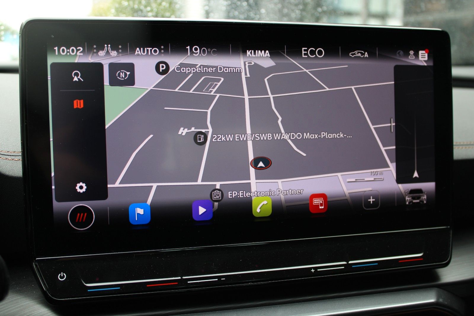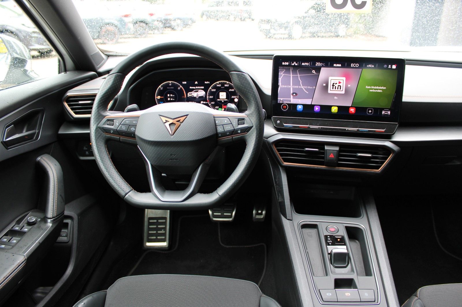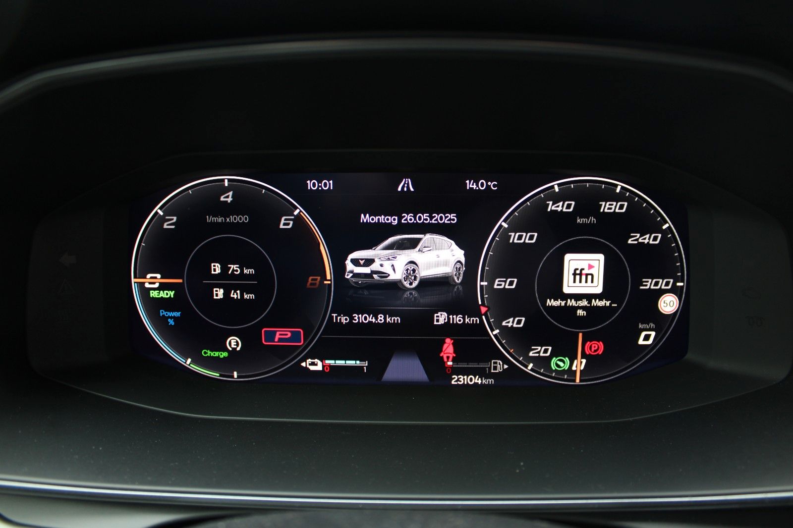 7 Lautsprecher, Airbag Beifahrerseite abschaltbar, Airbag Fahrer-/Beifahrerseite, Akustischer Fußgängerschutz, Außensound (e-sound / AVAS), Ambiente-Beleuchtung Smart Ambient Light, Antriebs-Schlupfregelung (ASR), Audio-Navigationssystem mit Touchscreen Farbbildschirm, Blinkleuchten LED in Außenspiegel integriert, Bluetooth-Schnittstelle mit Freisprecheinrichtung integriert, Dachhimmel schwarz, Dachreling schwarz, hochglänzend, Doppeltonhorn, Einstiegsleisten (Aluminium) vorn, beleuchtet, Elektron. Differentialsperre (XDS), Fahrassistenz-Paket L, Fahrassistenz-Paket: Travel Assist, Fahrassistenz-System: Adaptive Fahrwerksregelung (DCC), Fahrassistenz-System: Fahrprofilauswahl (CUPRA Drive Profile), Fahrassistenz-System: Parklenkassistent mit Einparkhilfe vorn und hinten, Fahrassistenz-System: Pre-Crash-System, Fensterheber elektrisch vorn + hinten mit Komfortschaltung, Fensterzierleisten schwarz hochglänzend, Gepäckraumabdeckung / Rollo, Heckleuchten Voll-LED mit dynamischem Lichtband (Infinite Light), Hybrid 180 kW (Motor 1,4 Ltr. - 110 kW TSI), Induktionsladeschale für Smartphone, Isofix-Aufnahmen für Kindersitz an Rücksitz, Karosserie: 5-türig, Klimaanlage Climatronic 3-Zonen, Kombiinstrument digital (virtual cockpit), Kopf-Airbag-System, Ladekabel mit Schukostecker, Licht- und Sicht-Paket, LM-Felgen, Mittelarmlehne hinten, Mittelkonsole vorn mit Mittelarmlehne, Becherhalter, Ablagebox und Luftausströmer hinten, Notrufsystem, Otto-Partikelfilter (OPF), Parkbremse elektrisch, Radioempfang digital (DAB+), Radstand 2680 mm, Reifen-Reparaturset, Rückfahrkamera, Rücksitzlehne geteilt/klappbar (1/3-2/3), Rücksitzlehnen umklappbar mit Fernentriegelung im Kofferraum, Schadstoffarm nach Abgasnorm Euro 6d, Seitenairbag, Seitenairbag vorn mitte (Central Airbag), Seitenscheiben hinten und Heckscheibe abgedunkelt, Sitz vorn links höhenverstellbar, Sitz vorn rechts höhenverstellbar, Sitzbezug / Polsterung: Stoff, Sonnenblende links mit Spiegel (beleuchtet), Sonnenblende rechts mit Spiegel (beleuchtet), Sport-Schalensitze vorn mit integrierten Kopfstützen, Start/Stop-Anlage, Steckdose (12V-Anschluß) vorn, Steckdose 230V im Gepäckraum, USB-Ladeanschlüsse (2-fach, Typ C) für 2.Sitzreihe, USB-Schnittstelle vorn (2-fach, Typ C), Verzurrösen Koffer-/Laderaum, Warnanlage für Sicherheitsgurt-System, Wärmeschutzverglasung