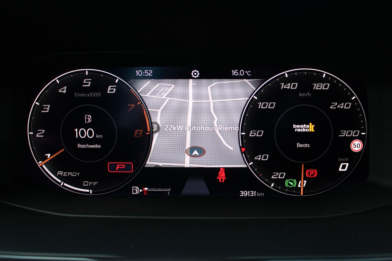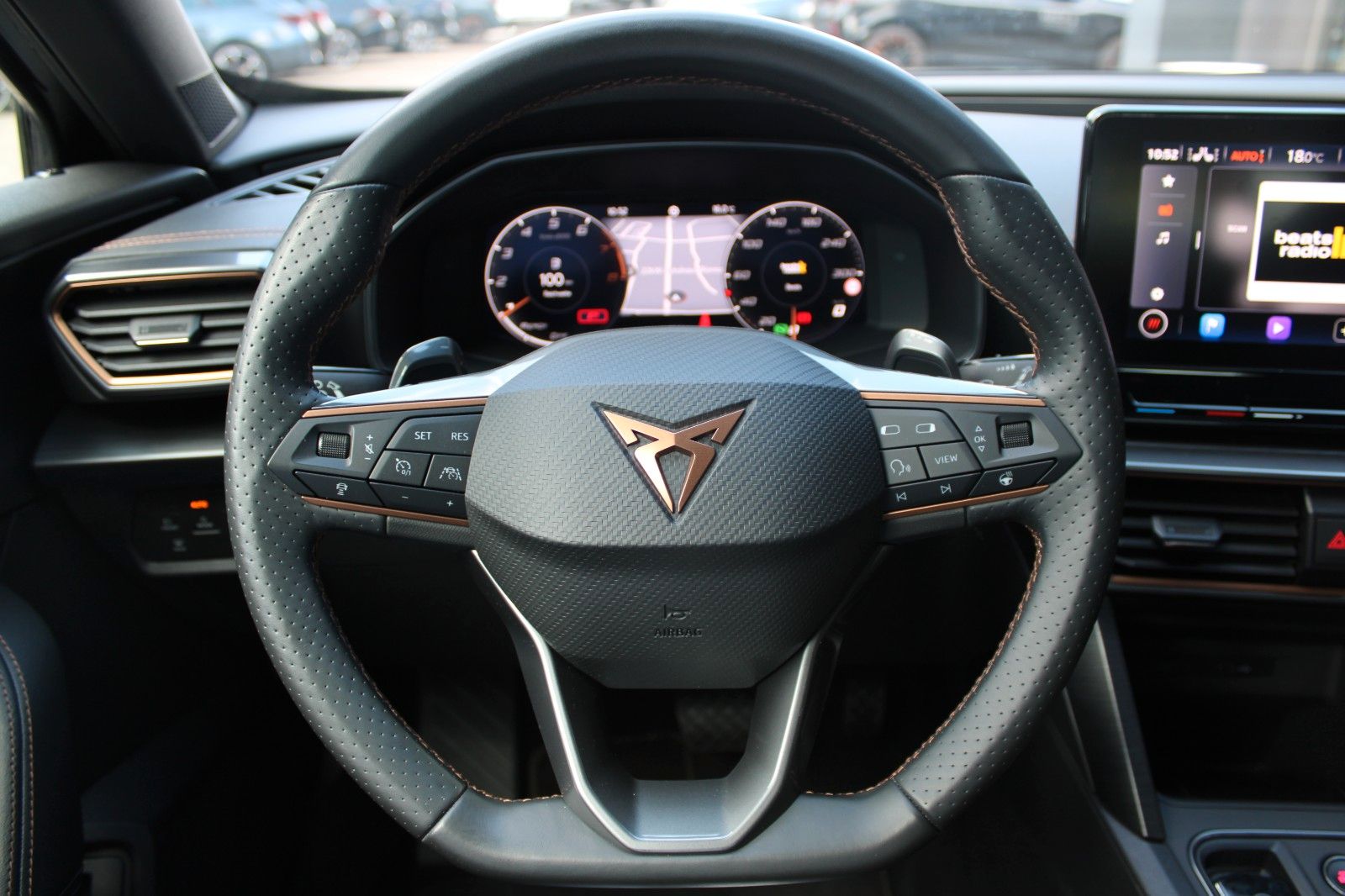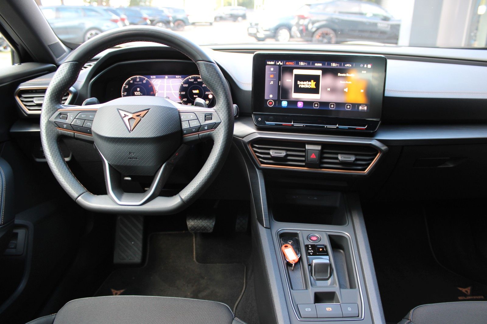 7 Lautsprecher, Airbag Beifahrerseite abschaltbar, Airbag Fahrer-/Beifahrerseite, Antriebs-Schlupfregelung (ASR), Blinkleuchten LED in Außenspiegel integriert, Bluetooth-Schnittstelle mit Freisprecheinrichtung integriert, Dachreling schwarz, hochglänzend, Doppeltonhorn, Einstiegsleisten (Aluminium) vorn, beleuchtet, Elektron. Differentialsperre (XDS), Fahrassistenz-System: Fahrprofilauswahl (CUPRA Drive Profile), Fensterheber elektrisch vorn + hinten mit Komfortschaltung, Fensterzierleisten schwarz hochglänzend, Gepäckraumabdeckung / Rollo, Heckleuchten Voll-LED mit dynamischem Lichtband (Infinite Light), Isofix-Aufnahmen für Kindersitz an Rücksitz, Karosserie: 5-türig, Klimaanlage Climatronic 3-Zonen, Kombiinstrument digital (virtual cockpit), Kopf-Airbag-System, Laderaumboden variabel und herausnehmbar, Licht- und Sicht-Paket, LM-Felgen, Mittelarmlehne hinten, Mittelkonsole vorn mit Mittelarmlehne, Becherhalter, Ablagebox und Luftausströmer hinten, Motor 1,5 Ltr. - 110 kW 16V TSI ACT, Notrufsystem, Otto-Partikelfilter (OPF), Parkbremse elektrisch, Radioempfang digital (DAB+), Radstand 2679 mm, Reifen-Reparaturset, Rücksitzlehne geteilt/klappbar (1/3-2/3), Rücksitzlehnen umklappbar mit Fernentriegelung im Kofferraum, Schadstoffarm nach Abgasnorm Euro 6d, Seitenairbag, Seitenairbag vorn mitte (Central Airbag), Seitenscheiben hinten und Heckscheibe abgedunkelt, Sitz vorn links höhenverstellbar, Sitz vorn rechts höhenverstellbar, Sitzbezug / Polsterung: Stoff, Sonnenblende links mit Spiegel (beleuchtet), Sonnenblende rechts mit Spiegel (beleuchtet), Sportsitze vorn, Start/Stop-Anlage, Steckdose (12V-Anschluß) vorn, Steckdose 230V im Gepäckraum, USB-Ladeanschlüsse (2-fach, Typ C) für 2.Sitzreihe, USB-Schnittstelle vorn (2-fach, Typ C), Verzurrösen Koffer-/Laderaum, Warnanlage für Sicherheitsgurt-System, Wärmeschutzverglasung,
