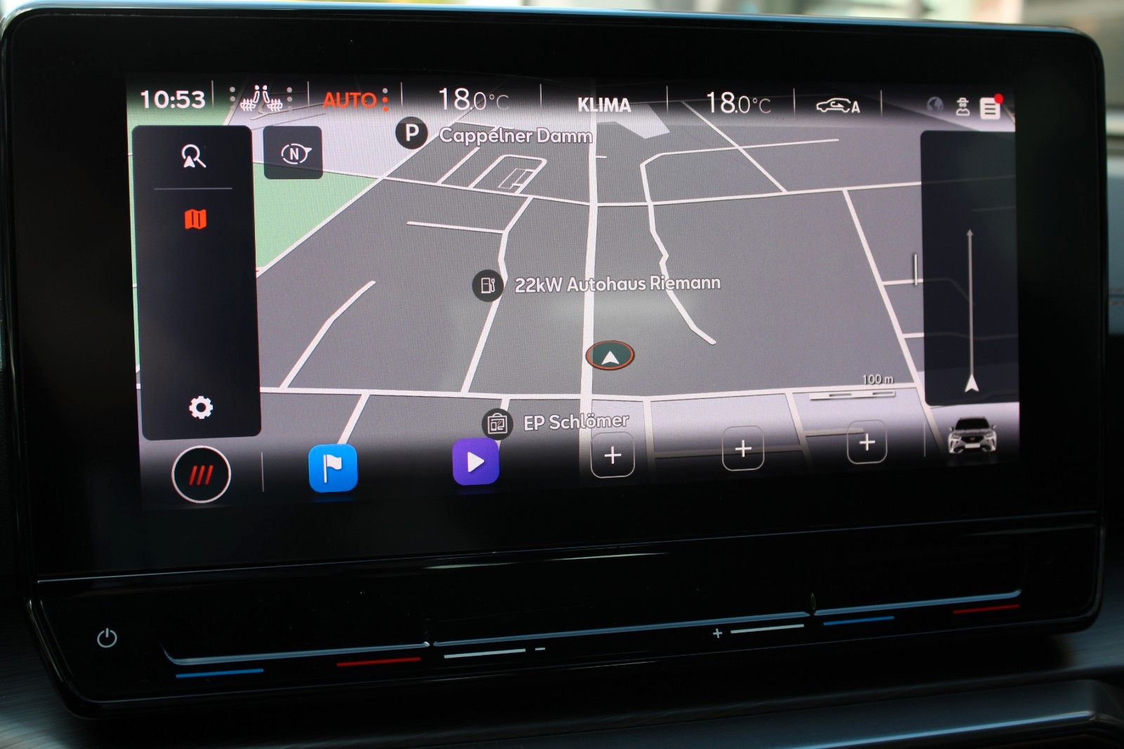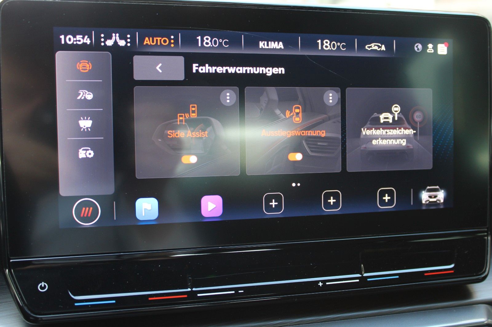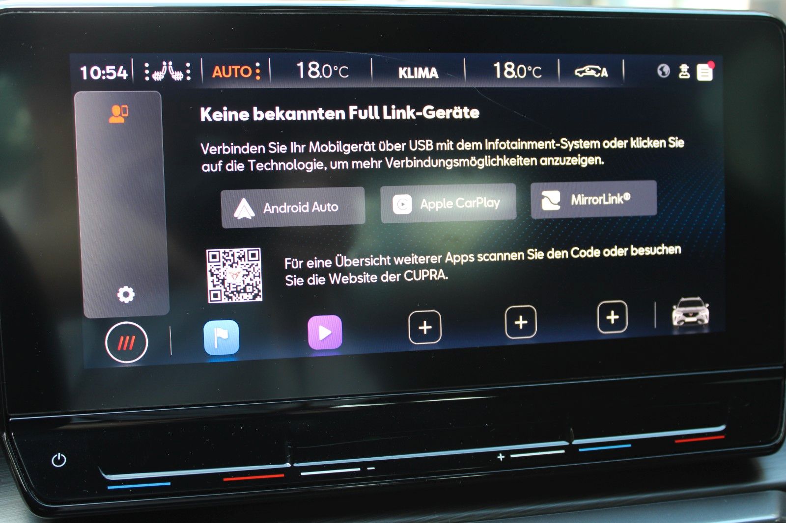 7 Lautsprecher, Airbag Beifahrerseite abschaltbar, Airbag Fahrer-/Beifahrerseite, Antriebs-Schlupfregelung (ASR), Blinkleuchten LED in Außenspiegel integriert, Bluetooth-Schnittstelle mit Freisprecheinrichtung integriert, Dachreling schwarz, hochglänzend, Doppeltonhorn, Einstiegsleisten (Aluminium) vorn, beleuchtet, Elektron. Differentialsperre (XDS), Fahrassistenz-System: Fahrprofilauswahl (CUPRA Drive Profile), Fensterheber elektrisch vorn + hinten mit Komfortschaltung, Fensterzierleisten schwarz hochglänzend, Gepäckraumabdeckung / Rollo, Heckleuchten Voll-LED mit dynamischem Lichtband (Infinite Light), Isofix-Aufnahmen für Kindersitz an Rücksitz, Karosserie: 5-türig, Klimaanlage Climatronic 3-Zonen, Kombiinstrument digital (virtual cockpit), Kopf-Airbag-System, Laderaumboden variabel und herausnehmbar, Licht- und Sicht-Paket, LM-Felgen, Mittelarmlehne hinten, Mittelkonsole vorn mit Mittelarmlehne, Becherhalter, Ablagebox und Luftausströmer hinten, Motor 1,5 Ltr. - 110 kW 16V TSI ACT, Notrufsystem, Otto-Partikelfilter (OPF), Parkbremse elektrisch, Radioempfang digital (DAB+), Radstand 2679 mm, Reifen-Reparaturset, Rücksitzlehne geteilt/klappbar (1/3-2/3), Rücksitzlehnen umklappbar mit Fernentriegelung im Kofferraum, Schadstoffarm nach Abgasnorm Euro 6d, Seitenairbag, Seitenairbag vorn mitte (Central Airbag), Seitenscheiben hinten und Heckscheibe abgedunkelt, Sitz vorn links höhenverstellbar, Sitz vorn rechts höhenverstellbar, Sitzbezug / Polsterung: Stoff, Sonnenblende links mit Spiegel (beleuchtet), Sonnenblende rechts mit Spiegel (beleuchtet), Sportsitze vorn, Start/Stop-Anlage, Steckdose (12V-Anschluß) vorn, Steckdose 230V im Gepäckraum, USB-Ladeanschlüsse (2-fach, Typ C) für 2.Sitzreihe, USB-Schnittstelle vorn (2-fach, Typ C), Verzurrösen Koffer-/Laderaum, Warnanlage für Sicherheitsgurt-System, Wärmeschutzverglasung,