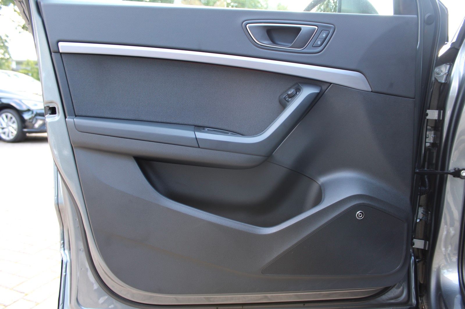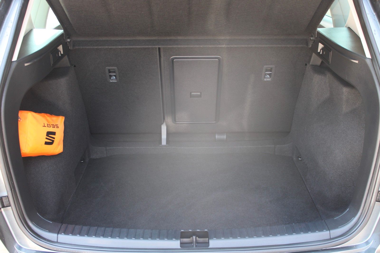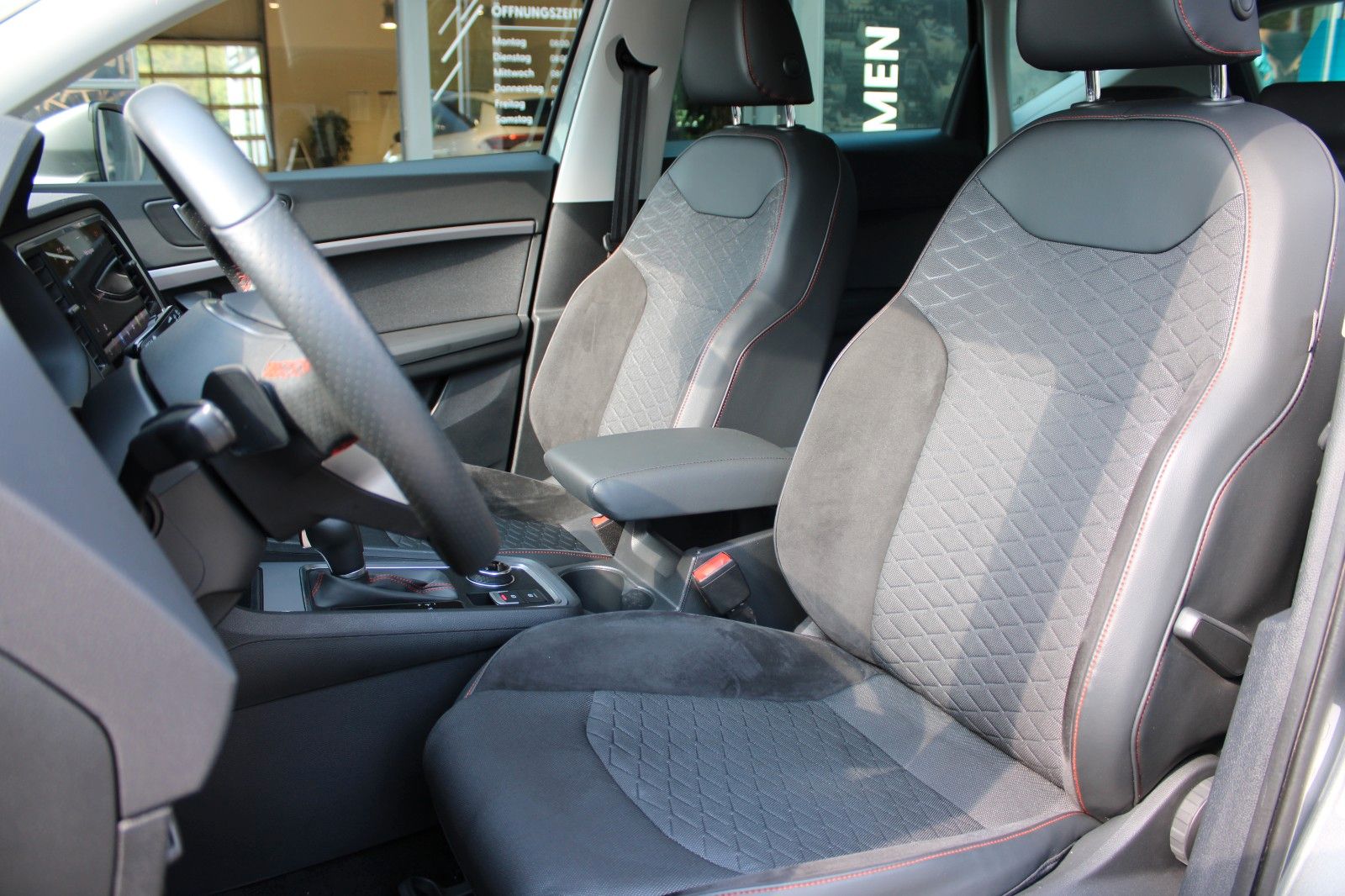 3. Bremsleuchte, Ablagetasche an Vordersitzlehnen, Airbag Beifahrerseite abschaltbar, Airbag Fahrer-/Beifahrerseite, Antriebs-Schlupfregelung (ASR), Außenspiegel elektr. verstell-, heiz- und anklappbar mit Spiegelabsenkung, Außenspiegel grau, Blinkleuchten LED in Außenspiegel integriert, Bluetooth-Schnittstelle mit Freisprecheinrichtung integriert, Bordcomputer, Brillenfach, Dachreling, Doppeltonhorn, Einparkhilfe hinten, Einstiegsleisten beleuchtet, Elektron. Querdifferentialsperre (XDS), Fahrassistenz-System: Berganfahr-Assistent (Hill-Holder), Fahrassistenz-System: Fahrprofilauswahl (SEAT Drive Profile), Fahrassistenz-System: Müdigkeitserkennung, Fahrassistenz-System: Umfeldbeobachtungssystem (Front assist) mit City-Notbremsfunktion, Fensterheber elektrisch vorn + hinten mit Komfortschaltung, Gepäckraumabdeckung / Rollo, Handschuhfach beleuchtet, Heckleuchten LED mit dynamischem Blinklicht, Heckspoiler Wagenfarbe, Innenraumlicht-Paket LED, Isofix-Aufnahmen für Kindersitz, Karosserie: 5-türig, Klimaanlage Climatronic 2-Zonen, Knieairbag Fahrerseite, Kofferraumbeleuchtung, Kopf-Airbag-System, Lendenwirbelstütze Sitz vorn links, verstellbar, Lendenwirbelstütze Sitz vorn rechts, verstellbar, Mittelarmlehne hinten, Mittelkonsole vorn mit Mittelarmlehne, Becherhalter, Ablagebox und Luftausströmer hinten, Modellpflege, Motor 1,5 Ltr. - 110 kW 16V TSI ACT, Nebelscheinwerfer LED mit Abbiegelicht, Notrufsystem, Otto-Partikelfilter (OPF), Parkbremse elektrisch mit Auto-Hold-Funktion, Pedale Aluminium-Design, Radstand 2638 mm, Reifen-Reparaturset, Reifenkontroll-Anzeige, Rückfahrkamera, Rücksitzlehne geteilt/klappbar (1/3-2/3), Schadstoffarm nach Abgasnorm Euro 6d, Schalt-/Wählhebelgriff Leder, Scheinwerfer Voll-LED, Schließ-/Startsystem Kessy, SEAT Media-System Plus, Seitenairbag, Seitenscheiben hinten und Heckscheibe abgedunkelt, Sitz vorn links höhenverstellbar, Sitz vorn rechts höhenverstellbar, Sitzbezug / Polsterung: Stoff, Sonnenblende links mit Spiegel (beleuchtet), Sonnenblende rechts mit Spiegel (beleuchtet), Start/Stop-Anlage, Stau-/Ablagefach unter Sitz vorn links, Steckdose (12V-Anschluß) vorn, Stoßfänger FR-Design, USB-Ladeanschlüsse (2-fach, Typ C) für 2.Sitzreihe, Verzurrösen Koffer-/Laderaum, Wärmeschutzverglasung,