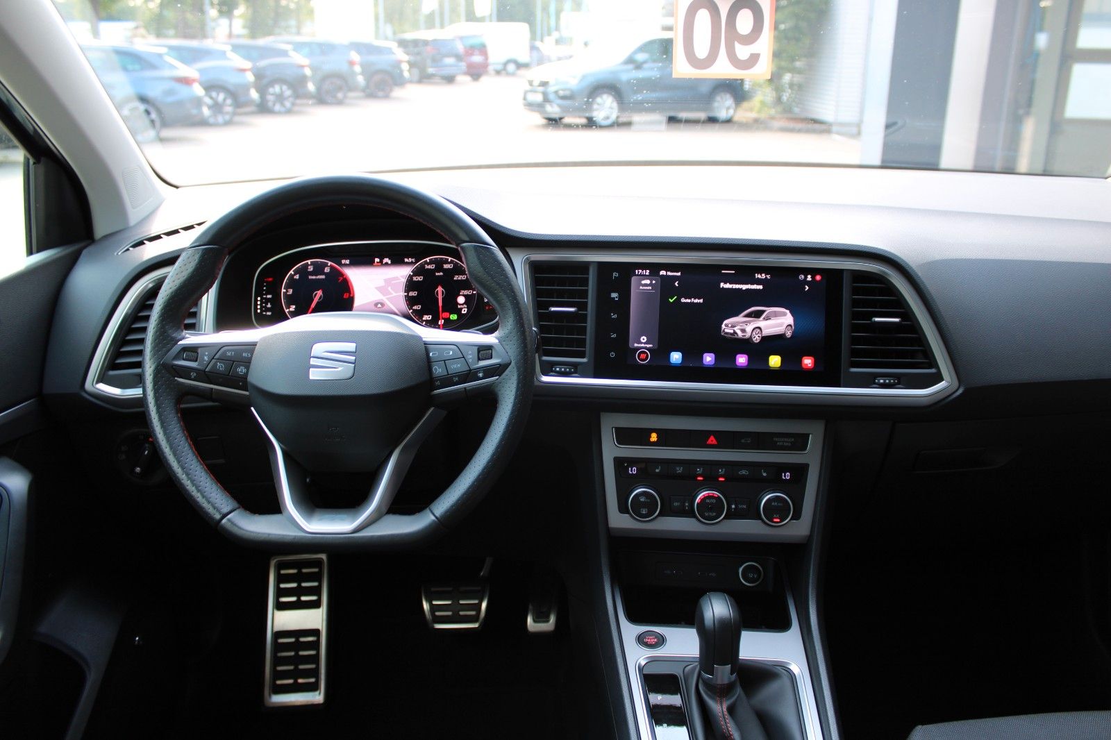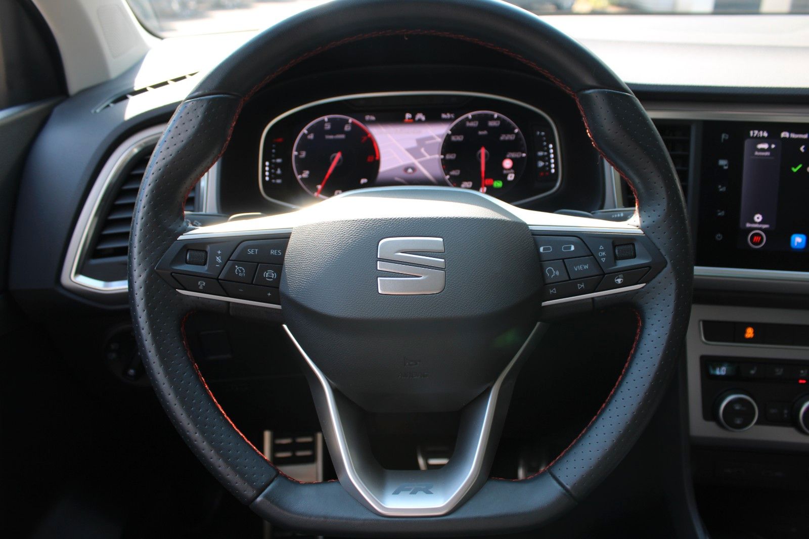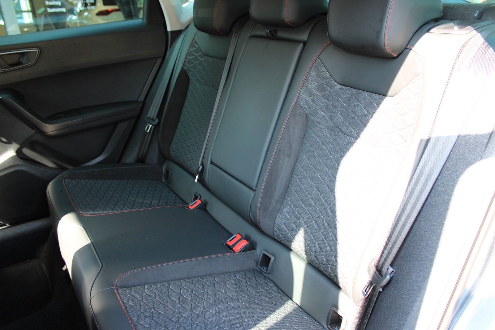 3. Bremsleuchte, Ablagetasche an Vordersitzlehnen, Airbag Beifahrerseite abschaltbar, Airbag Fahrer-/Beifahrerseite, Antriebs-Schlupfregelung (ASR), Außenspiegel elektr. verstell-, heiz- und anklappbar mit Spiegelabsenkung, Außenspiegel grau, Blinkleuchten LED in Außenspiegel integriert, Bluetooth-Schnittstelle mit Freisprecheinrichtung integriert, Bordcomputer, Brillenfach, Dachreling, Doppeltonhorn, Einparkhilfe hinten, Einstiegsleisten beleuchtet, Elektron. Querdifferentialsperre (XDS), Fahrassistenz-System: Berganfahr-Assistent (Hill-Holder), Fahrassistenz-System: Fahrprofilauswahl (SEAT Drive Profile), Fahrassistenz-System: Müdigkeitserkennung, Fahrassistenz-System: Umfeldbeobachtungssystem (Front assist) mit City-Notbremsfunktion, Fensterheber elektrisch vorn + hinten mit Komfortschaltung, Gepäckraumabdeckung / Rollo, Handschuhfach beleuchtet, Heckleuchten LED mit dynamischem Blinklicht, Heckspoiler Wagenfarbe, Innenraumlicht-Paket LED, Isofix-Aufnahmen für Kindersitz, Karosserie: 5-türig, Klimaanlage Climatronic 2-Zonen, Knieairbag Fahrerseite, Kofferraumbeleuchtung, Kopf-Airbag-System, Lendenwirbelstütze Sitz vorn links, verstellbar, Lendenwirbelstütze Sitz vorn rechts, verstellbar, Mittelarmlehne hinten, Mittelkonsole vorn mit Mittelarmlehne, Becherhalter, Ablagebox und Luftausströmer hinten, Modellpflege, Motor 1,5 Ltr. - 110 kW 16V TSI ACT, Nebelscheinwerfer LED mit Abbiegelicht, Notrufsystem, Otto-Partikelfilter (OPF), Parkbremse elektrisch mit Auto-Hold-Funktion, Pedale Aluminium-Design, Radstand 2638 mm, Reifen-Reparaturset, Reifenkontroll-Anzeige, Rückfahrkamera, Rücksitzlehne geteilt/klappbar (1/3-2/3), Schadstoffarm nach Abgasnorm Euro 6d, Schalt-/Wählhebelgriff Leder, Scheinwerfer Voll-LED, Schließ-/Startsystem Kessy, SEAT Media-System Plus, Seitenairbag, Seitenscheiben hinten und Heckscheibe abgedunkelt, Sitz vorn links höhenverstellbar, Sitz vorn rechts höhenverstellbar, Sitzbezug / Polsterung: Stoff, Sonnenblende links mit Spiegel (beleuchtet), Sonnenblende rechts mit Spiegel (beleuchtet), Start/Stop-Anlage, Stau-/Ablagefach unter Sitz vorn links, Steckdose (12V-Anschluß) vorn, Stoßfänger FR-Design, USB-Ladeanschlüsse (2-fach, Typ C) für 2.Sitzreihe, Verzurrösen Koffer-/Laderaum, Wärmeschutzverglasung,