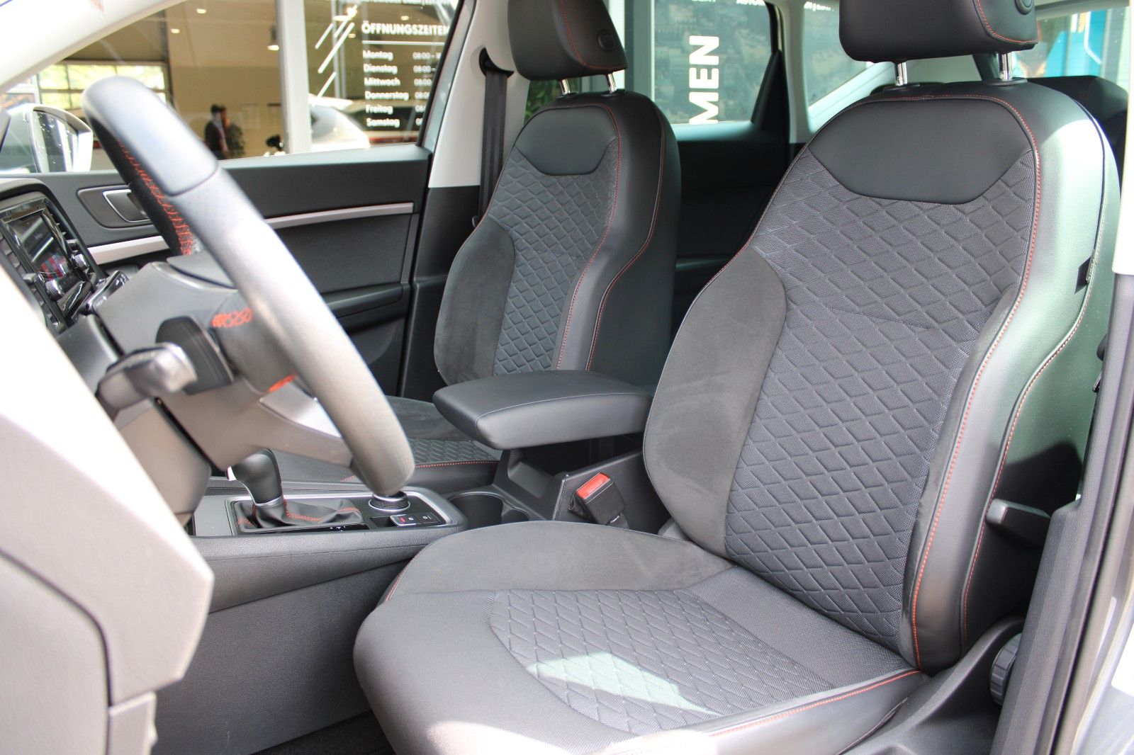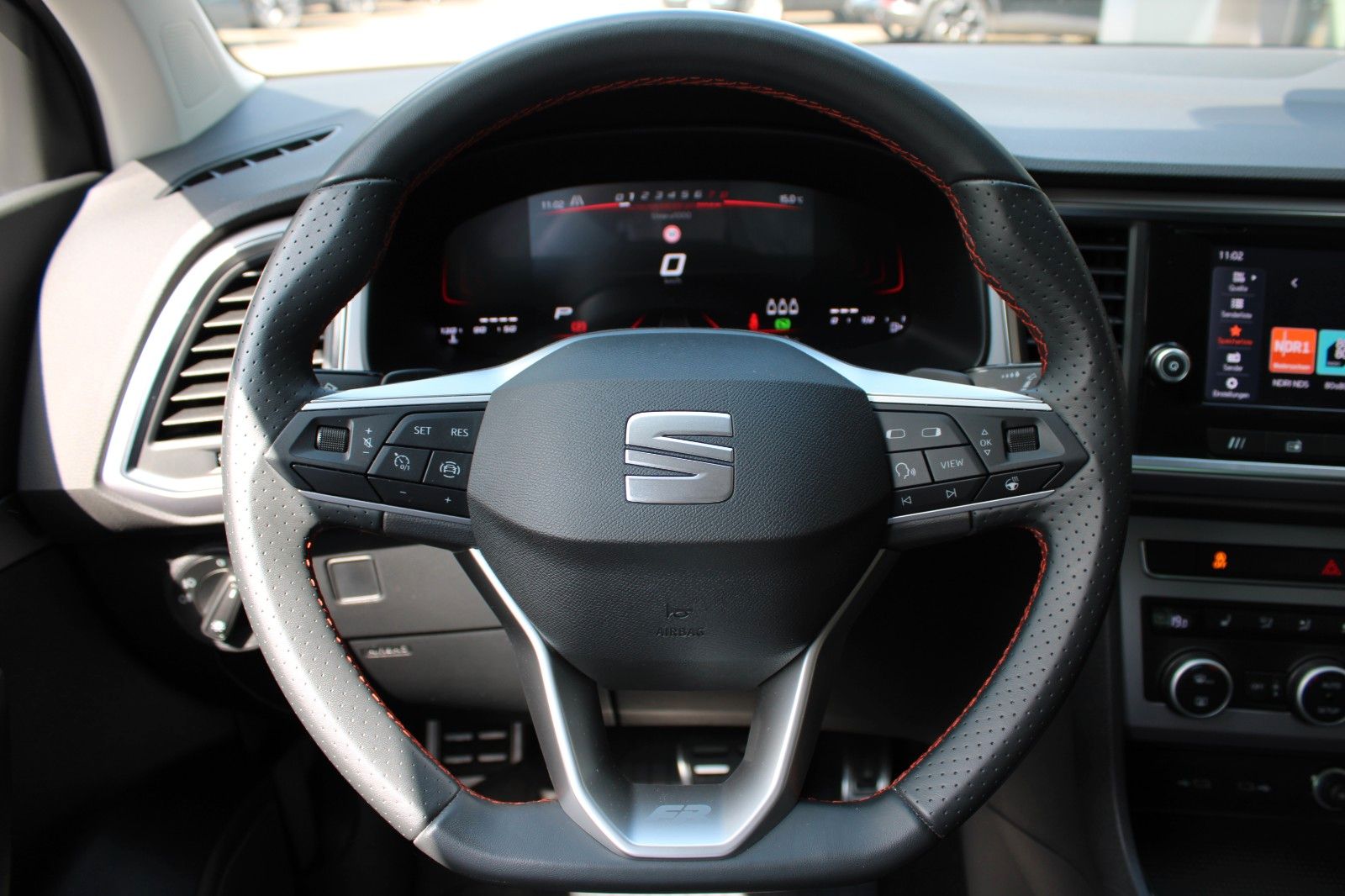 3. Bremsleuchte, 8 Lautsprecher, Ablagetasche an Vordersitzlehnen, Airbag Beifahrerseite abschaltbar, Airbag Fahrer-/Beifahrerseite, Antriebs-Schlupfregelung (ASR), Außenspiegel elektr. verstell-, heiz- und anklappbar mit Spiegelabsenkung, Außenspiegel grau, Blinkleuchten LED in Außenspiegel integriert, Bluetooth-Schnittstelle mit Freisprecheinrichtung integriert, Bordcomputer, Brillenfach, Dachreling, Doppeltonhorn, Einparkhilfe hinten, Einstiegsleisten beleuchtet, Elektron. Querdifferentialsperre (XDS), Fahrassistenz-System: Berganfahr-Assistent (Hill-Holder), Fahrassistenz-System: Fahrprofilauswahl (SEAT Drive Profile), Fahrassistenz-System: Müdigkeitserkennung, Fahrassistenz-System: Spurhalteassistent, Fahrassistenz-System: Umfeldbeobachtungssystem (Front assist) mit City-Notbremsfunktion, Fahrassistenz-System: Verkehrszeichenerkennung, Fensterheber elektrisch vorn + hinten mit Komfortschaltung, Gepäckraumabdeckung / Rollo, Handschuhfach beleuchtet, Heckleuchten LED mit dynamischem Blinklicht, Heckspoiler Wagenfarbe, Innenraumlicht-Paket LED, Isofix-Aufnahmen für Kindersitz, Karosserie: 5-türig, Klimaanlage Climatronic 2-Zonen, Knieairbag Fahrerseite, Kofferraumbeleuchtung, Kombiinstrument digital (virtual cockpit), Kopf-Airbag-System, Lendenwirbelstütze Sitz vorn links, verstellbar, Lendenwirbelstütze Sitz vorn rechts, verstellbar, LM-Felgen, Mittelarmlehne hinten, Mittelkonsole vorn mit Mittelarmlehne, Becherhalter, Ablagebox und Luftausströmer hinten, Modellpflege, Motor 1,5 Ltr. - 110 kW 16V TSI ACT, Nebelscheinwerfer LED mit Abbiegelicht, Notrufsystem, Otto-Partikelfilter (OPF), Parkbremse elektrisch mit Auto-Hold-Funktion, Pedale Aluminium-Design, Radstand 2638 mm, Reifen-Reparaturset, Reifenkontroll-Anzeige, Rückfahrkamera, Rücksitzlehne geteilt/klappbar (1/3-2/3), Schadstoffarm nach Abgasnorm Euro 6e, Schalt-/Wählhebelgriff Leder, Scheinwerfer Voll-LED, SEAT Media-System Plus, Seitenairbag, Seitenscheiben hinten und Heckscheibe abgedunkelt, Sitz vorn links höhenverstellbar, Sitz vorn rechts höhenverstellbar, Sitzbezug / Polsterung: Stoff, Sonnenblende links mit Spiegel (beleuchtet), Sonnenblende rechts mit Spiegel (beleuchtet), Start/Stop-Anlage, Stau-/Ablagefach unter Sitz vorn links, Steckdose (12V-Anschluß) vorn, Stoßfänger FR-Design, USB-Ladeanschlüsse (2-fach, Typ C) für 2.Sitzreihe, Verzurrösen Koffer-/Laderaum, Wärmeschutzverglasung