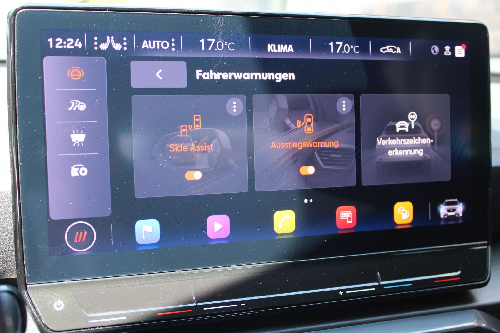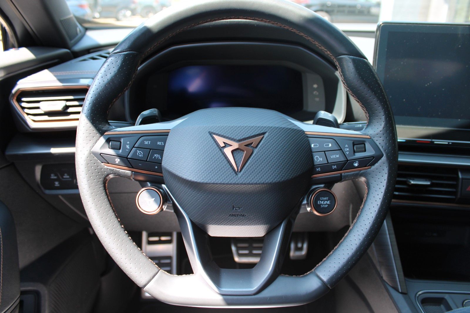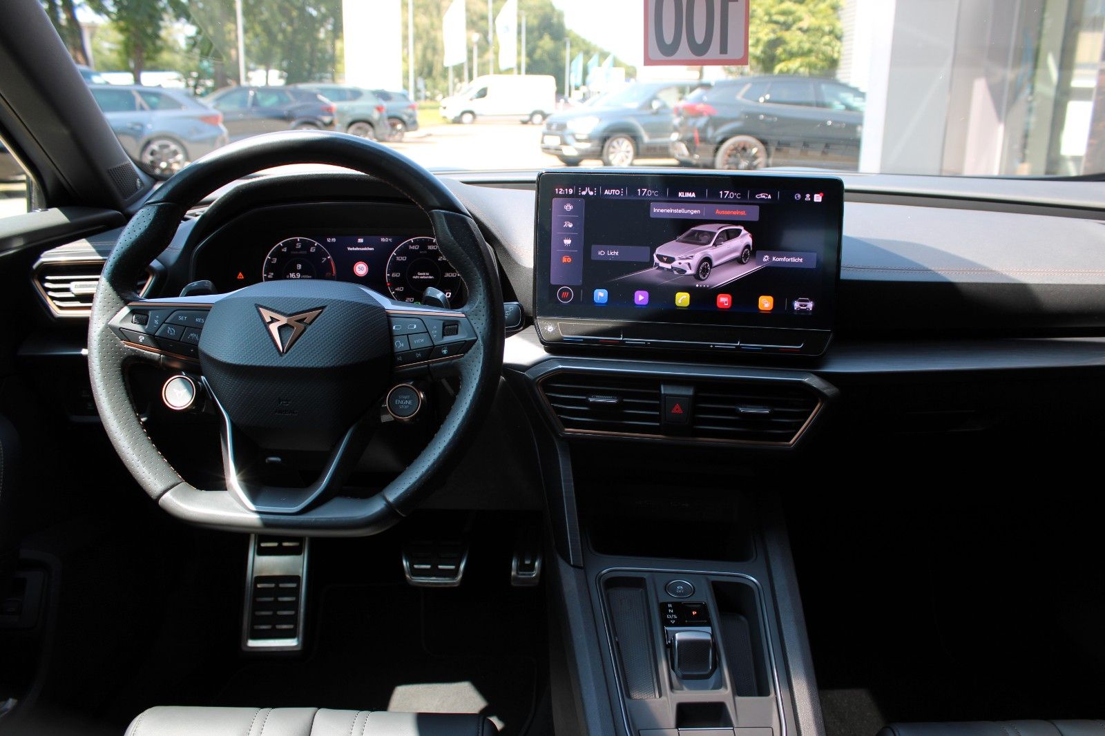 Abgasanlage mit Klappenbetätigung, Airbag Beifahrerseite abschaltbar, Airbag Fahrer-/Beifahrerseite, Ambiente-Beleuchtung Smart Ambient Light, Antriebs-Schlupfregelung (ASR), Audio-Navigationssystem mit Touchscreen Farbbildschirm, Außenspiegel elektr. verstell-, heiz- und anklappbar mit Spiegelabsenkung und Welcome Light, Blinkleuchten LED in Außenspiegel integriert, Bluetooth-Schnittstelle mit Freisprecheinrichtung integriert, Bremsanlage: Akebono High Performance vorn, Dachhimmel schwarz, Dachreling schwarz, Doppeltonhorn, Einstiegsleisten (Aluminium) vorn, beleuchtet, Elektron. Differentialsperre (XDS), Fahrassistenz-Paket XL, Fahrassistenz-System: Adaptive Fahrwerksregelung (DCC), Fahrassistenz-System: Fahrprofilauswahl (CUPRA Drive Profile), Fahrassistenz-System: Parklenkassistent mit Einparkhilfe vorn und hinten, Fensterheber elektrisch vorn + hinten mit Komfortschaltung, Fensterzierleisten schwarz, Full Link (MirrorLink, Apple CarPlay und Android Auto), Gepäckraumabdeckung / Rollo, Heckleuchten Voll-LED mit dynamischem Lichtband (Infinite Light), Induktionsladeschale für Smartphone, Isofix-Aufnahmen für Kindersitz an Rücksitz, Kamerasystem Umgebungsansicht (Top View, 360°), Karosserie: 5-türig, Klimaanlage Climatronic 3-Zonen, Kombiinstrument digital (virtual cockpit), Kopf-Airbag-System, Laderaumboden variabel und herausnehmbar, Licht- und Sicht-Paket, LM-Felgen, Mittelarmlehne hinten, Mittelkonsole vorn mit Mittelarmlehne, Becherhalter, Ablagebox und Luftausströmer hinten, Motor 2,5 Ltr. - 287 kW TSI, Notrufsystem, Otto-Partikelfilter (OPF), Parkbremse elektrisch, Radioempfang digital (DAB+), Radstand 2681 mm, Reifen-Reparaturset, Rücksitzlehne geteilt/klappbar (1/3-2/3), Rücksitzlehnen umklappbar mit Fernentriegelung im Kofferraum, Schadstoffarm nach Abgasnorm Euro 6d, Seitenairbag, Seitenscheiben hinten und Heckscheibe abgedunkelt, Sitz vorn links höhenverstellbar, Sitz vorn rechts höhenverstellbar, Sonnenblende links mit Spiegel (beleuchtet), Sonnenblende rechts mit Spiegel (beleuchtet), Sport-Schalensitze vorn mit integrierten Kopfstützen, Start/Stop-Anlage, Steckdose (12V-Anschluß) vorn, Steckdose 230V im Gepäckraum, USB-Ladeanschlüsse (2-fach, Typ C) für 2.Sitzreihe, USB-Schnittstelle vorn (2-fach, Typ C), Verzurrösen Koffer-/Laderaum, Warnanlage für Sicherheitsgurt-System, Wärmeschutzverglasung