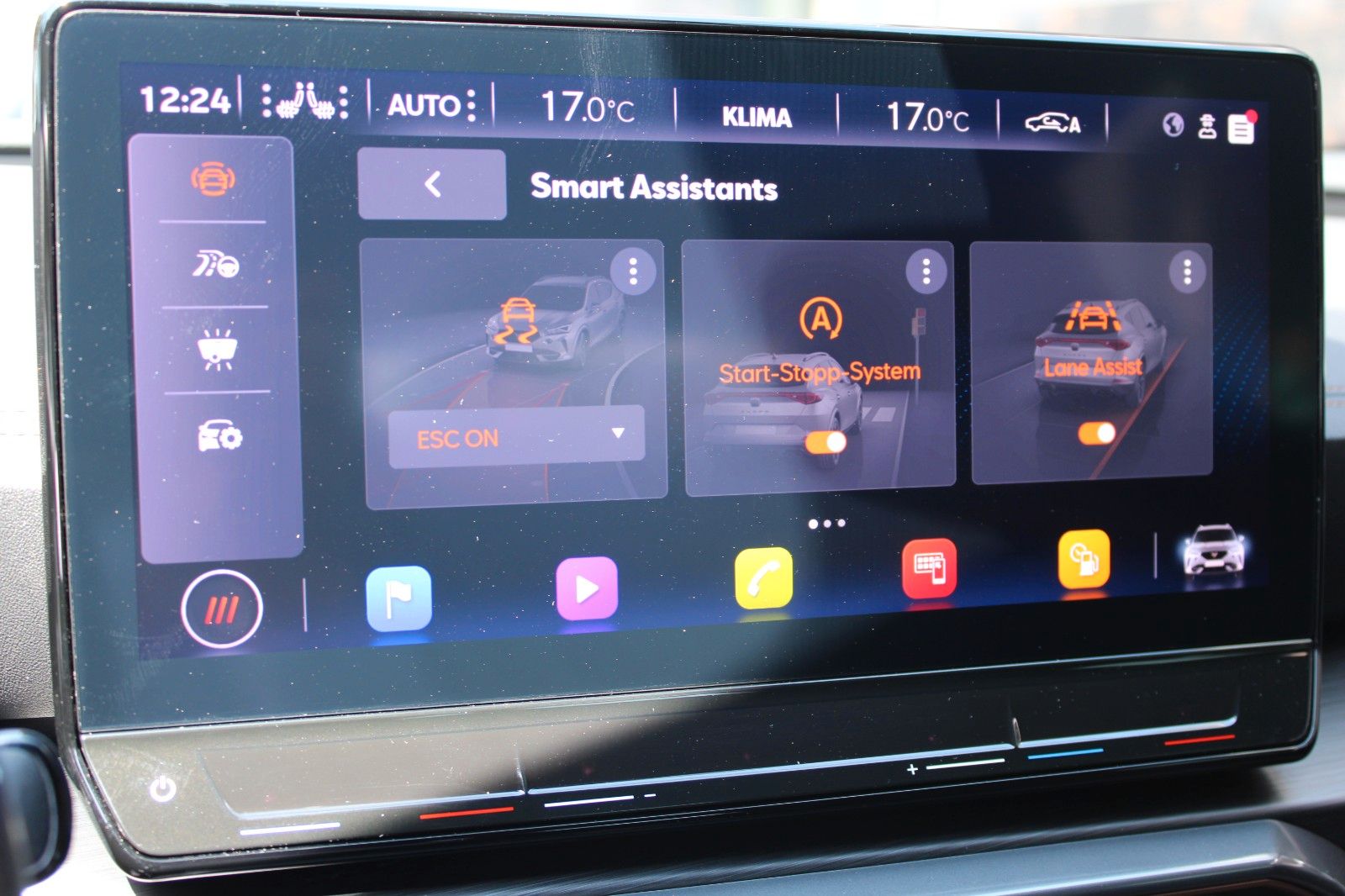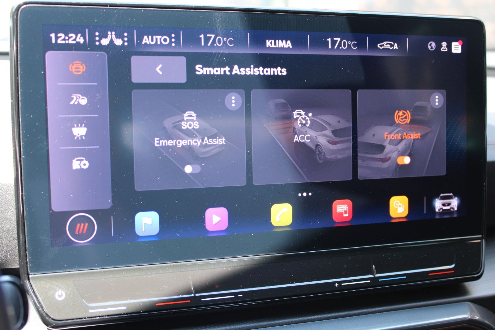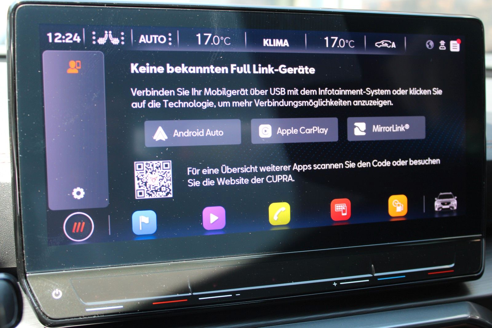 Abgasanlage mit Klappenbetätigung, Airbag Beifahrerseite abschaltbar, Airbag Fahrer-/Beifahrerseite, Ambiente-Beleuchtung Smart Ambient Light, Antriebs-Schlupfregelung (ASR), Audio-Navigationssystem mit Touchscreen Farbbildschirm, Außenspiegel elektr. verstell-, heiz- und anklappbar mit Spiegelabsenkung und Welcome Light, Blinkleuchten LED in Außenspiegel integriert, Bluetooth-Schnittstelle mit Freisprecheinrichtung integriert, Bremsanlage: Akebono High Performance vorn, Dachhimmel schwarz, Dachreling schwarz, Doppeltonhorn, Einstiegsleisten (Aluminium) vorn, beleuchtet, Elektron. Differentialsperre (XDS), Fahrassistenz-Paket XL, Fahrassistenz-System: Adaptive Fahrwerksregelung (DCC), Fahrassistenz-System: Fahrprofilauswahl (CUPRA Drive Profile), Fahrassistenz-System: Parklenkassistent mit Einparkhilfe vorn und hinten, Fensterheber elektrisch vorn + hinten mit Komfortschaltung, Fensterzierleisten schwarz, Full Link (MirrorLink, Apple CarPlay und Android Auto), Gepäckraumabdeckung / Rollo, Heckleuchten Voll-LED mit dynamischem Lichtband (Infinite Light), Induktionsladeschale für Smartphone, Isofix-Aufnahmen für Kindersitz an Rücksitz, Kamerasystem Umgebungsansicht (Top View, 360°), Karosserie: 5-türig, Klimaanlage Climatronic 3-Zonen, Kombiinstrument digital (virtual cockpit), Kopf-Airbag-System, Laderaumboden variabel und herausnehmbar, Licht- und Sicht-Paket, LM-Felgen, Mittelarmlehne hinten, Mittelkonsole vorn mit Mittelarmlehne, Becherhalter, Ablagebox und Luftausströmer hinten, Motor 2,5 Ltr. - 287 kW TSI, Notrufsystem, Otto-Partikelfilter (OPF), Parkbremse elektrisch, Radioempfang digital (DAB+), Radstand 2681 mm, Reifen-Reparaturset, Rücksitzlehne geteilt/klappbar (1/3-2/3), Rücksitzlehnen umklappbar mit Fernentriegelung im Kofferraum, Schadstoffarm nach Abgasnorm Euro 6d, Seitenairbag, Seitenscheiben hinten und Heckscheibe abgedunkelt, Sitz vorn links höhenverstellbar, Sitz vorn rechts höhenverstellbar, Sonnenblende links mit Spiegel (beleuchtet), Sonnenblende rechts mit Spiegel (beleuchtet), Sport-Schalensitze vorn mit integrierten Kopfstützen, Start/Stop-Anlage, Steckdose (12V-Anschluß) vorn, Steckdose 230V im Gepäckraum, USB-Ladeanschlüsse (2-fach, Typ C) für 2.Sitzreihe, USB-Schnittstelle vorn (2-fach, Typ C), Verzurrösen Koffer-/Laderaum, Warnanlage für Sicherheitsgurt-System, Wärmeschutzverglasung