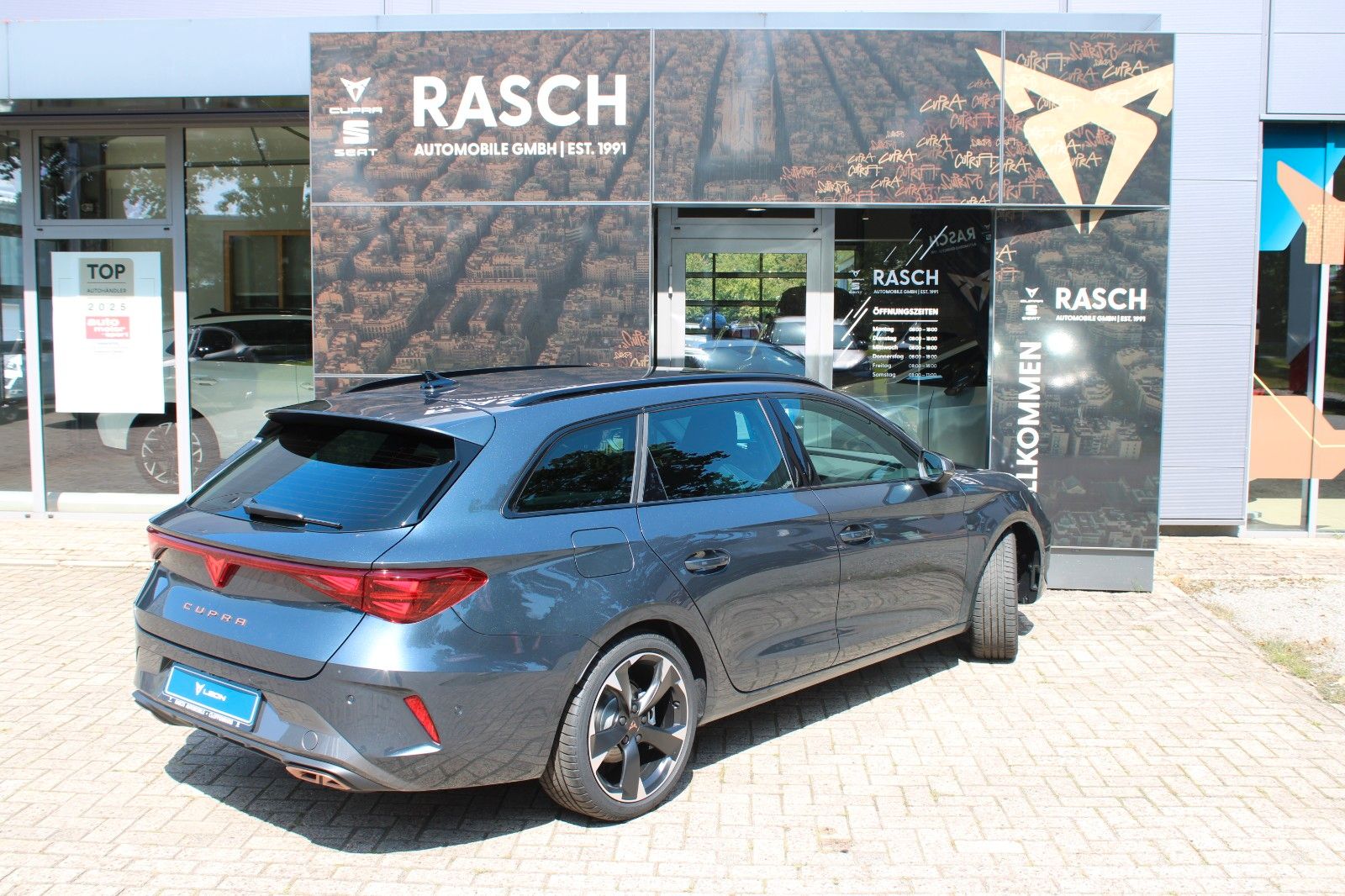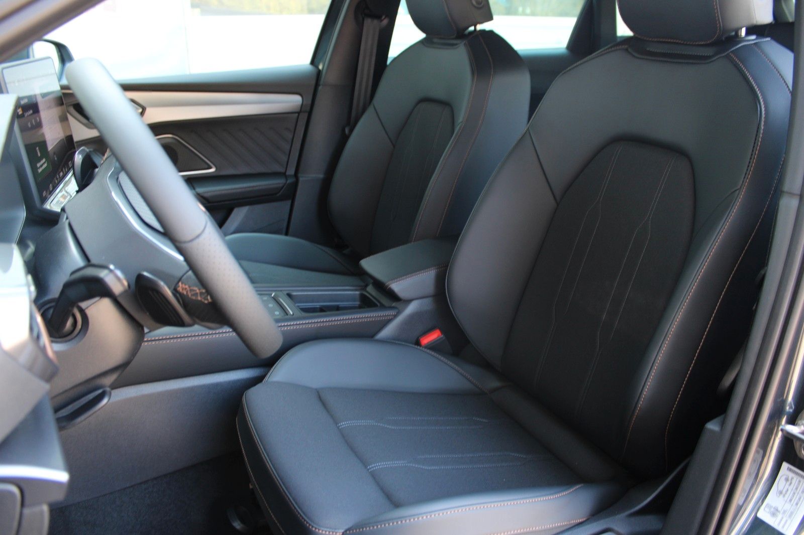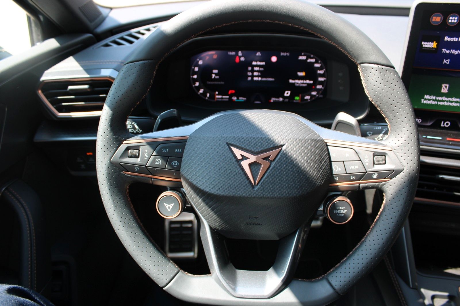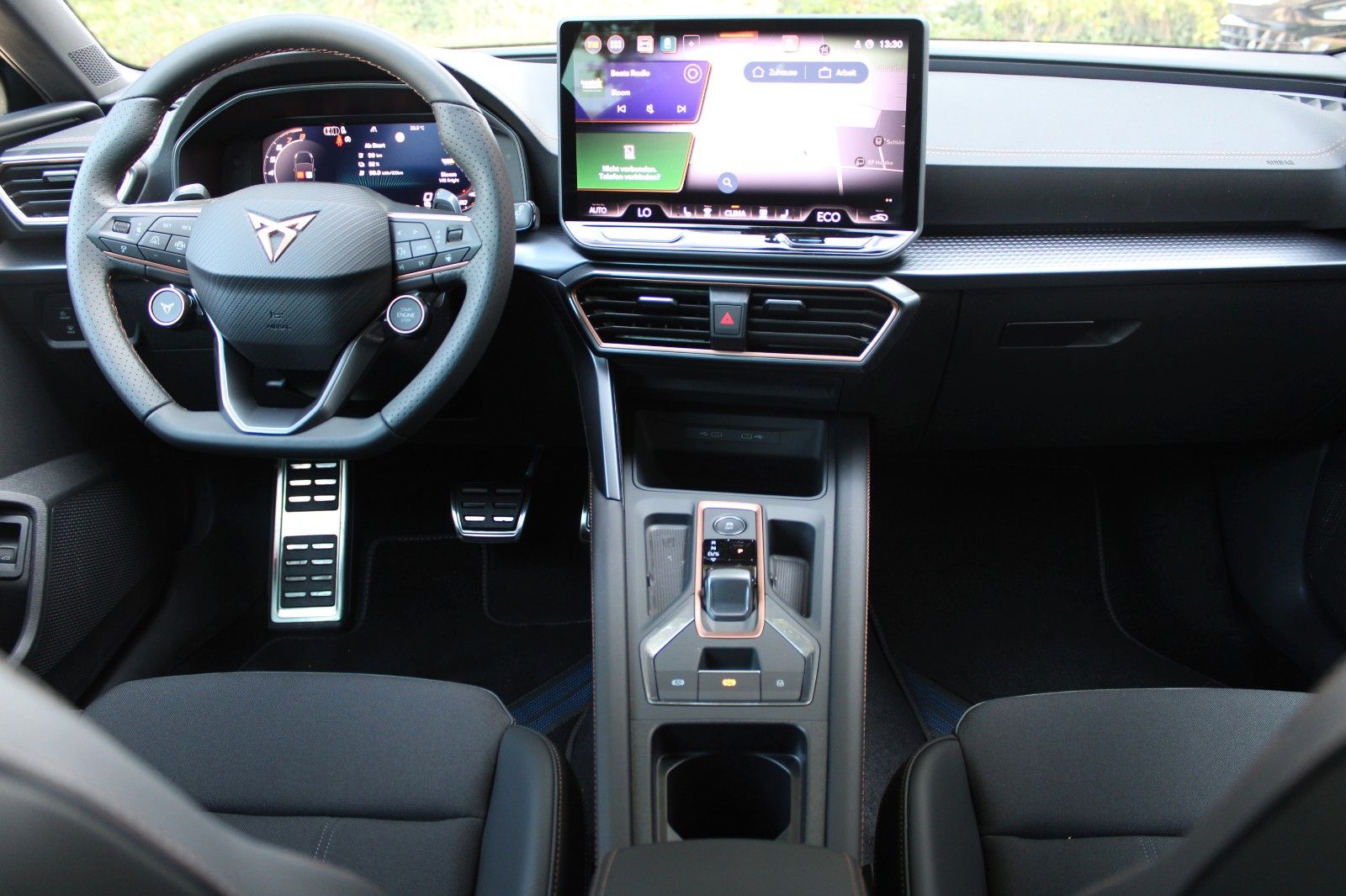 6 Lautsprecher, Abdeckkappen Außenspiegel Dark Aluminium, Airbag Beifahrerseite abschaltbar, Airbag Fahrer-/Beifahrerseite, Außenspiegel elektr. verstell-, heiz- und anklappbar mit Spiegelabsenkung und Welcome Light, Connectivity-Box, Dachhimmel schwarz, Dachreling schwarz, hochglänzend, Differentialsperre (Vorderachse), Einparkhilfe vorn und hinten, Einstiegsleisten vorn beleuchtet, Elektron. Differentialsperre (XDS), Fahrassistenz-System: Fahrprofilauswahl (CUPRA Drive Profile), Fensterheber elektrisch vorn + hinten mit Komfortschaltung, Fensterzierleisten schwarz hochglänzend, Full Link (MirrorLink, Apple CarPlay und Android Auto), Gepäck-/Laderaumboden doppelt, Gepäckraum-Abtrennung (Netz), Gepäckraumabdeckung / Rollo, Gepäckraumbeleuchtung (LED), Handschuhfach mit LED-Beleuchtung, Innenausstattung: Interieurleisten Copper, Isofix-Aufnahmen für Kindersitz an Beifahrersitz und Rücksitz (inkl. i-Size-Kindersitze), Karosserie: 5-türig, Klimaanlage Climatronic 3-Zonen, Kombiinstrument digital (virtual cockpit), Kopf-Airbag-System, Kopfstützen hinten (3-fach), Lendenwirbelstütze Sitz vorn links, verstellbar, Lendenwirbelstütze Sitz vorn rechts, verstellbar, Leseleuchten hinten LED, Leseleuchten vorn LED, Licht- und Sicht-Paket, LM-Felgen, Media-System Plus, Mobile Online Dienste Cupra Connect, Modellpflege, Motor 1,5 Ltr. - 110 kW (System: 150 kW) TSI eHybrid (DUCB), Notrufsystem, Parkbremse elektrisch mit Auto-Hold-Funktion, Radioempfang digital (DAB+), Reifen-Reparaturset, Rücksitzlehne geteilt/klappbar mit Mittelarmlehne und Durchladeeinrichtung, Rücksitzlehnen umklappbar mit Fernentriegelung im Kofferraum, Schadstoffarm nach Abgasnorm Euro 6e, Seitenairbag, Seitenairbag vorn mitte (Central Airbag), Seitenscheiben ab 2.Sitzreihe und Heckscheibe dunkel getönt (Privacy Glass), Sicherheitsgurte vorn höhenverstellbar, Sitz vorn links höhenverstellbar, Sitz vorn rechts höhenverstellbar, Sitzbezug / Polsterung: Stoff/Kunstleder schwarz (Sharp Textil), Sonnenblende links mit Spiegel (beleuchtet), Sonnenblende rechts mit Spiegel (beleuchtet), Sportsitze vorn, Steckdose 230V im Gepäckraum, USB-Ladeanschlüsse (2-fach, Typ C) für 2.Sitzreihe, USB-Schnittstelle vorn (2-fach, Typ C), Verzurrösen Koffer-/Laderaum, Voll-LED-Paket, Warnanlage für Sicherheitsgurt-System, Wärmeschutzverglasung