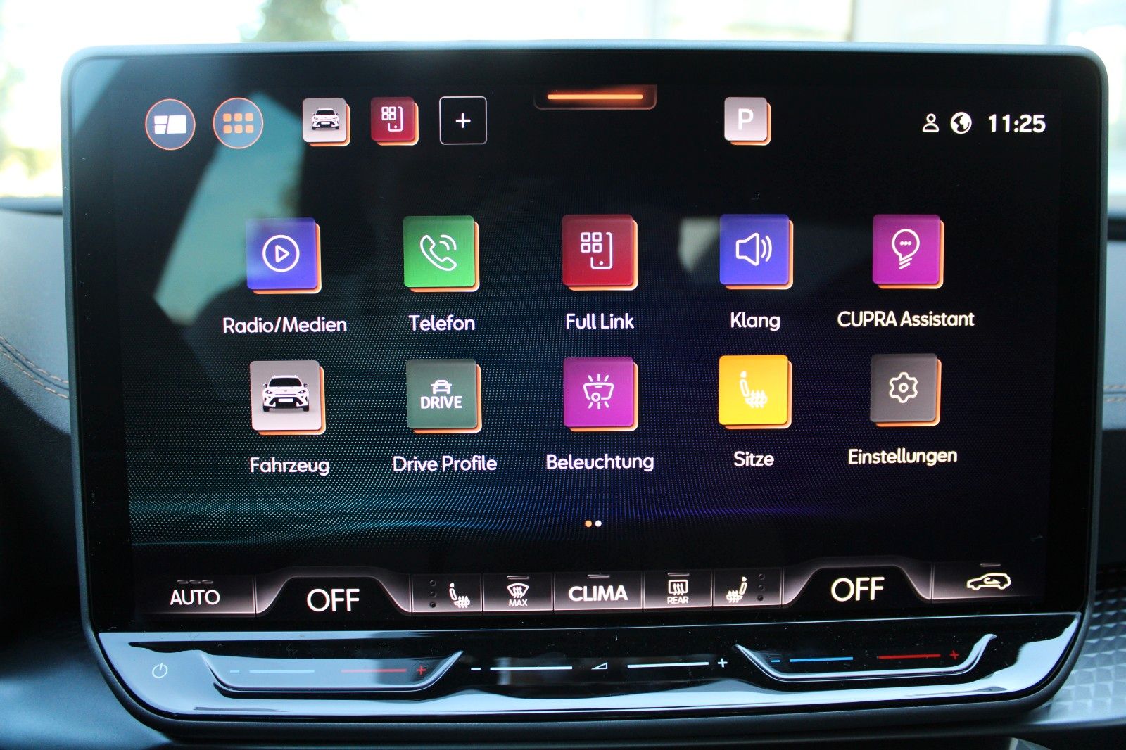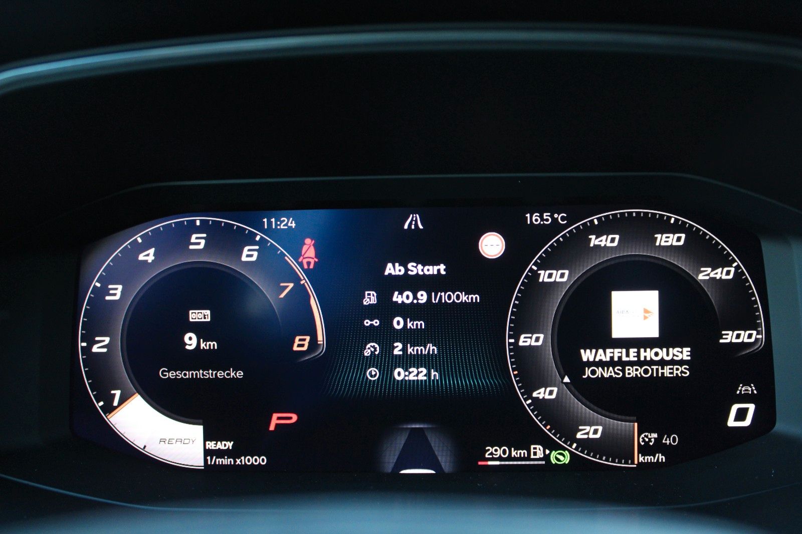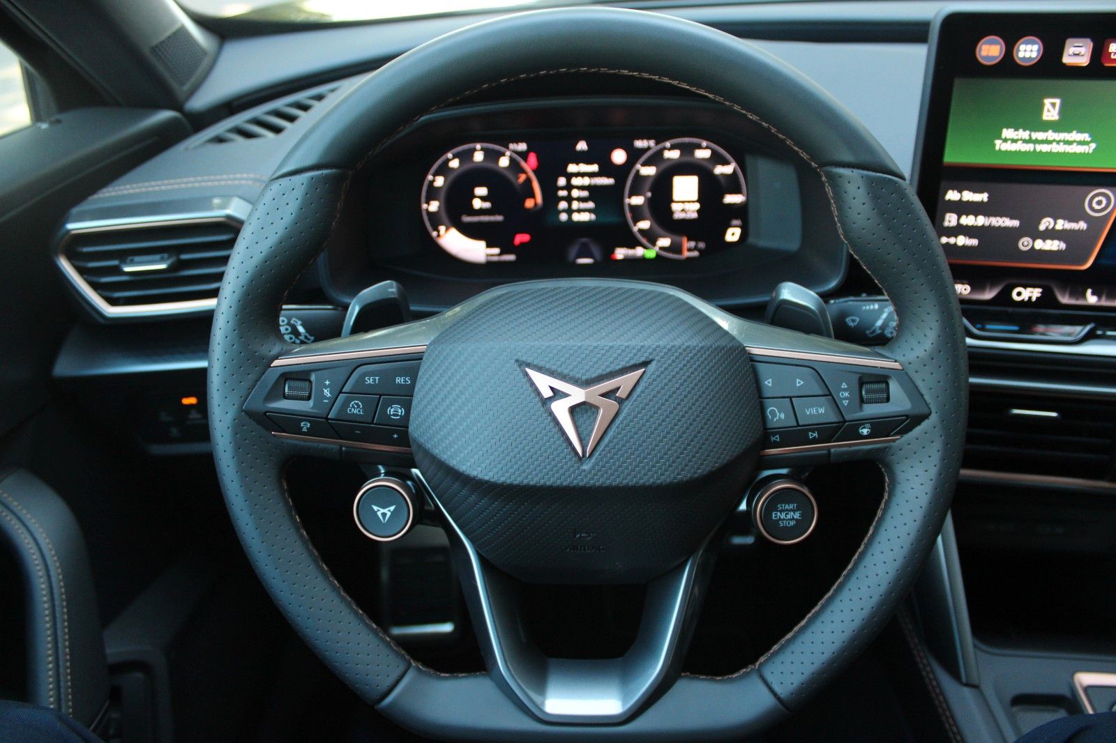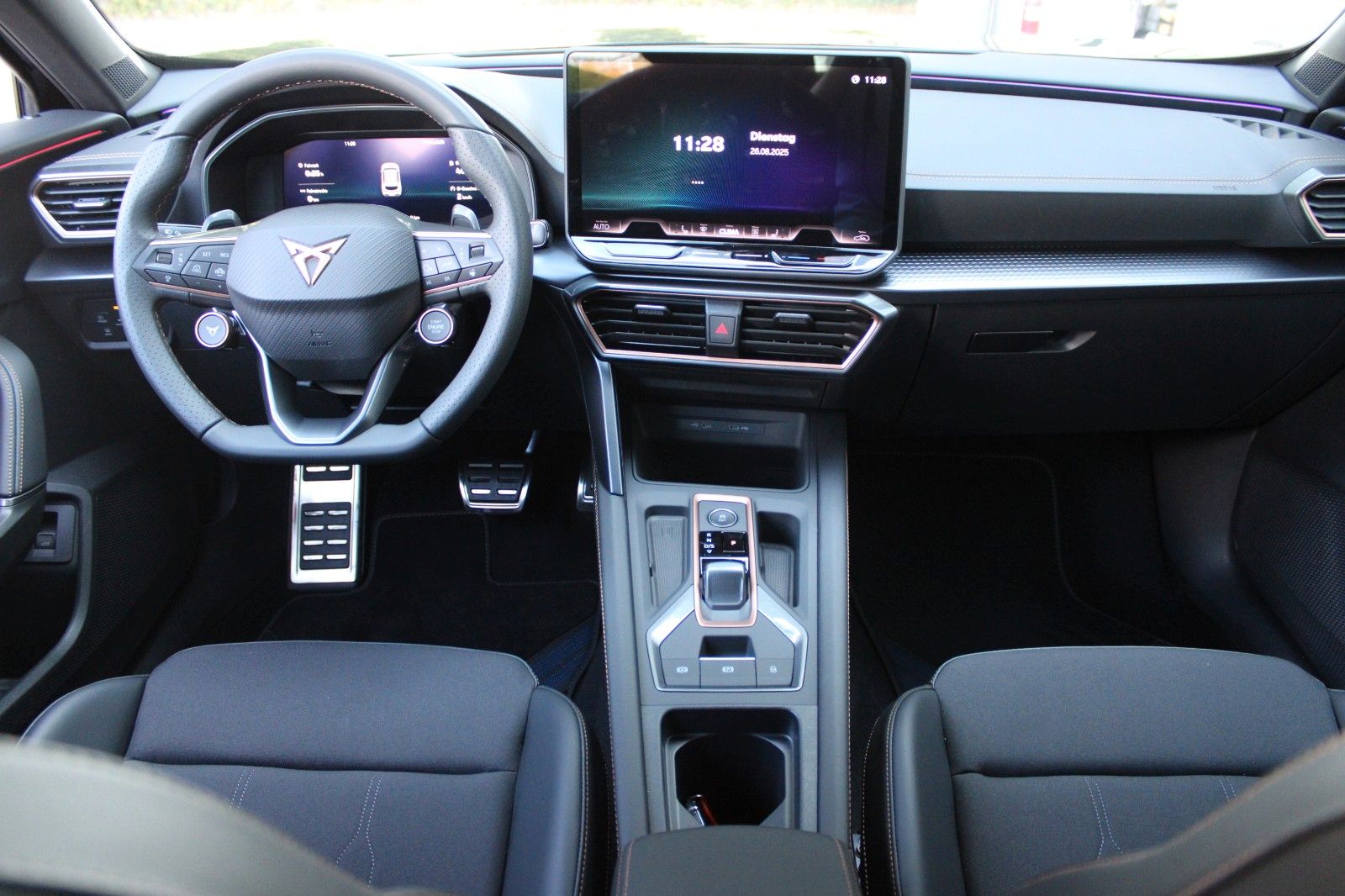 6 Lautsprecher, Abdeckkappen Außenspiegel Schwarz, Airbag Beifahrerseite abschaltbar, Airbag Fahrer-/Beifahrerseite, Außenspiegel elektr. verstell-, heiz- und anklappbar mit Spiegelabsenkung und Welcome Light, Connectivity-Box, Dachhimmel schwarz, Dachreling schwarz, hochglänzend, Differentialsperre (Vorderachse), Einparkhilfe vorn und hinten, Einstiegsleisten vorn beleuchtet, Elektron. Differentialsperre (XDS), Fahrassistenz-System: Fahrprofilauswahl (CUPRA Drive Profile), Fensterheber elektrisch vorn + hinten mit Komfortschaltung, Fensterzierleisten schwarz, Full Link (MirrorLink, Apple CarPlay und Android Auto), Gepäck-/Laderaumboden doppelt, Gepäckraumabdeckung / Rollo, Gepäckraumbeleuchtung (LED), Handschuhfach mit LED-Beleuchtung, Innenausstattung: Interieurleisten Copper, Isofix-Aufnahmen für Kindersitz an Beifahrersitz und Rücksitz (inkl. i-Size-Kindersitze), Karosserie: 5-türig, Klimaanlage Climatronic 3-Zonen, Kombiinstrument digital (virtual cockpit), Kopf-Airbag-System, Kopfstützen hinten (3-fach), Ladekabel mit Schukostecker, Lendenwirbelstütze Sitz vorn links, verstellbar, Lendenwirbelstütze Sitz vorn rechts, verstellbar, Leseleuchten hinten LED, Leseleuchten vorn LED, Licht- und Sicht-Paket, LM-Felgen, Media-System Plus, Mild-Hybrid 110 kW (Motor 1,5 Ltr. - 110 kW eTSI), Modellpflege, Notrufsystem, Otto-Partikelfilter (OPF), Parkbremse elektrisch mit Auto-Hold-Funktion, Radioempfang digital (DAB+), Radstand Standard, Reifen-Reparaturset, Rücksitzlehne geteilt/klappbar mit Mittelarmlehne und Durchladeeinrichtung, Rücksitzlehnen umklappbar mit Fernentriegelung im Kofferraum, Schadstoffarm nach Abgasnorm Euro 6e, Seitenairbag, Seitenairbag vorn mitte (Central Airbag), Seitenscheiben ab 2.Sitzreihe und Heckscheibe dunkel getönt (Privacy Glass), Seitenscheiben hinten und Heckscheibe abgedunkelt, Sitz vorn links höhenverstellbar, Sitz vorn rechts höhenverstellbar, Sitzbezug / Polsterung: Stoff/Kunstleder schwarz (Sharp Textil), Sonnenblende links mit Spiegel (beleuchtet), Sonnenblende rechts mit Spiegel (beleuchtet), Sportsitze vorn, Start/Stop-Anlage, Steckdose 230V im Gepäckraum, USB-Ladeanschlüsse (2-fach, Typ C) für 2.Sitzreihe, USB-Schnittstelle vorn (2-fach, Typ C), Verzurrösen Koffer-/Laderaum, Voll-LED-Paket, Warnanlage für Sicherheitsgurt-System, Wärmeschutzverglasung