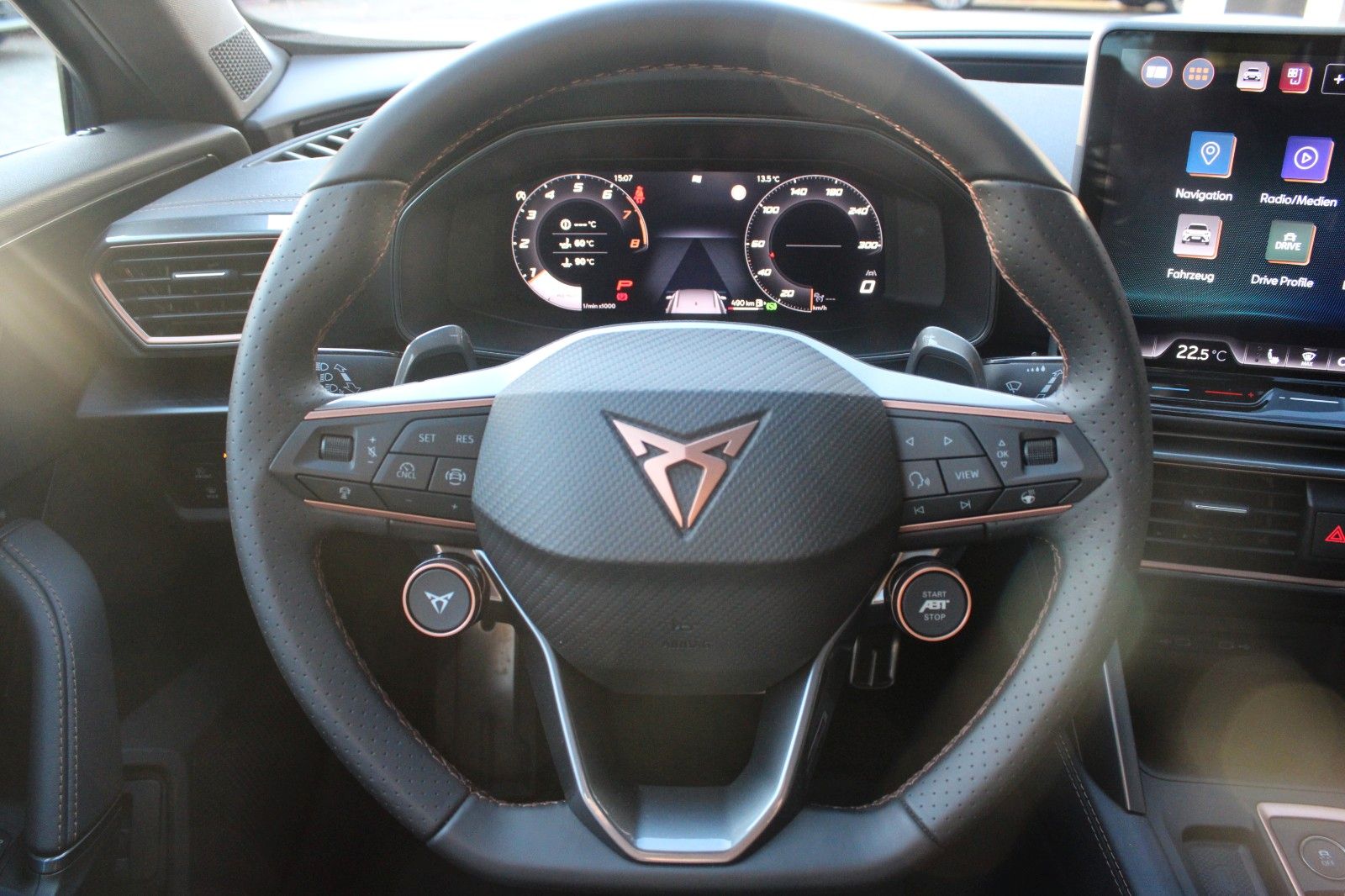 6 Lautsprecher, Abdeckkappen Außenspiegel Schwarz, Airbag Beifahrerseite abschaltbar, Airbag Fahrer-/Beifahrerseite, Außenspiegel elektr. verstell-, heiz- und anklappbar mit Spiegelabsenkung und Welcome Light, Connectivity-Box, Dachhimmel schwarz, Dachreling schwarz, hochglänzend, Differentialsperre (Vorderachse), Edge Paket mit Safesicherung, Einparkhilfe vorn und hinten, Einstiegsleisten vorn beleuchtet, Elektron. Differentialsperre (XDS), Fahrassistenz-System: Adaptive Fahrwerksregelung (DCC), Fahrassistenz-System: Fahrprofilauswahl (CUPRA Drive Profile), Fensterheber elektrisch vorn + hinten mit Komfortschaltung, Fensterzierleisten schwarz, Full Link (MirrorLink, Apple CarPlay und Android Auto), Gepäck-/Laderaumboden doppelt, Gepäckraumabdeckung / Rollo, Gepäckraumbeleuchtung (LED), Handschuhfach mit LED-Beleuchtung, Innenausstattung: Interieurleisten Copper, Isofix-Aufnahmen für Kindersitz an Beifahrersitz und Rücksitz (inkl. i-Size-Kindersitze), Karosserie: 5-türig, Klimaanlage Climatronic 3-Zonen, Kombiinstrument digital (virtual cockpit), Kopf-Airbag-System, Kopfstützen hinten (3-fach), Ladekabel mit Schukostecker, Lendenwirbelstütze Sitz vorn links, verstellbar, Lendenwirbelstütze Sitz vorn rechts, verstellbar, Leseleuchten hinten LED, Leseleuchten vorn LED, Licht- und Sicht-Paket, LM-Felgen, Media-System Plus, Modellpflege, Motor 2,0 Ltr. - 245 kW 16V TSI, Notrufsystem, Otto-Partikelfilter (OPF), Parkbremse elektrisch mit Auto-Hold-Funktion, Radioempfang digital (DAB+), Radstand Standard, Reifen-Reparaturset, Rücksitzlehne geteilt/klappbar mit Mittelarmlehne und Durchladeeinrichtung, Rücksitzlehnen umklappbar mit Fernentriegelung im Kofferraum, Schadstoffarm nach Abgasnorm Euro 6e, Seitenairbag, Seitenairbag vorn mitte (Central Airbag), Seitenscheiben ab 2.Sitzreihe und Heckscheibe dunkel getönt (Privacy Glass), Seitenscheiben hinten und Heckscheibe abgedunkelt, Sitz vorn links höhenverstellbar, Sitz vorn rechts höhenverstellbar, Sonnenblende links mit Spiegel (beleuchtet), Sonnenblende rechts mit Spiegel (beleuchtet), Start/Stop-Anlage, Steckdose 230V im Gepäckraum, USB-Ladeanschlüsse (2-fach, Typ C) für 2.Sitzreihe, USB-Schnittstelle vorn (2-fach, Typ C), Verzurrösen Koffer-/Laderaum, Warnanlage für Sicherheitsgurt-System, Wärmeschutzverglasung.
