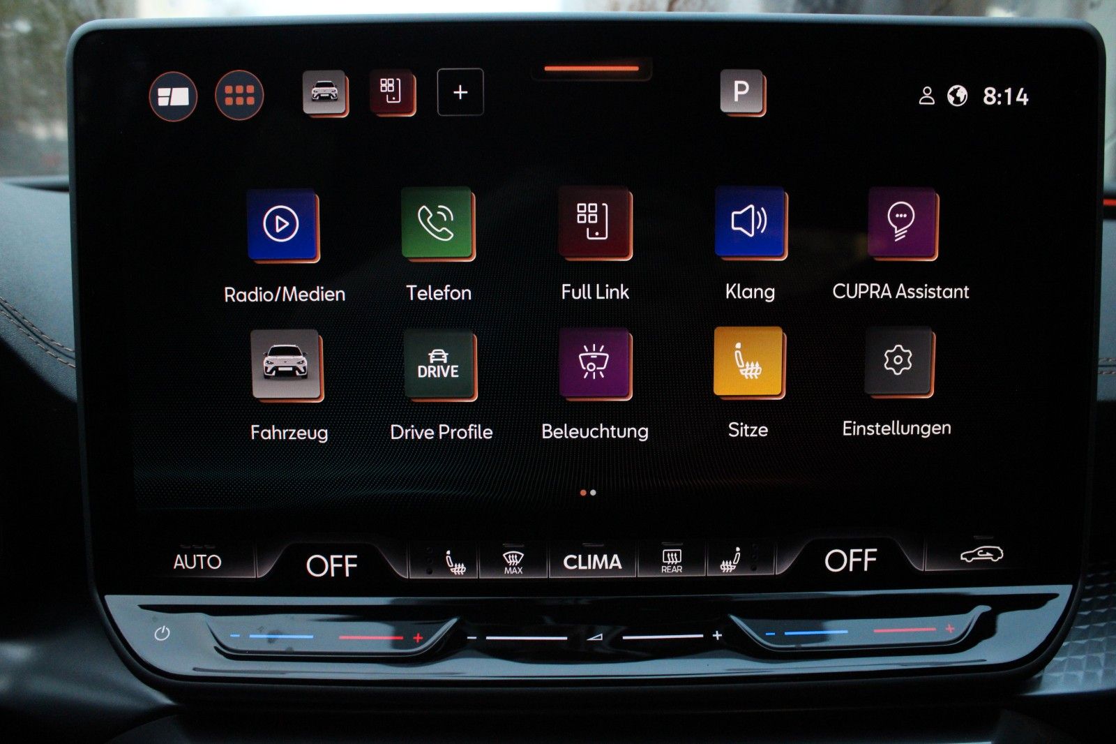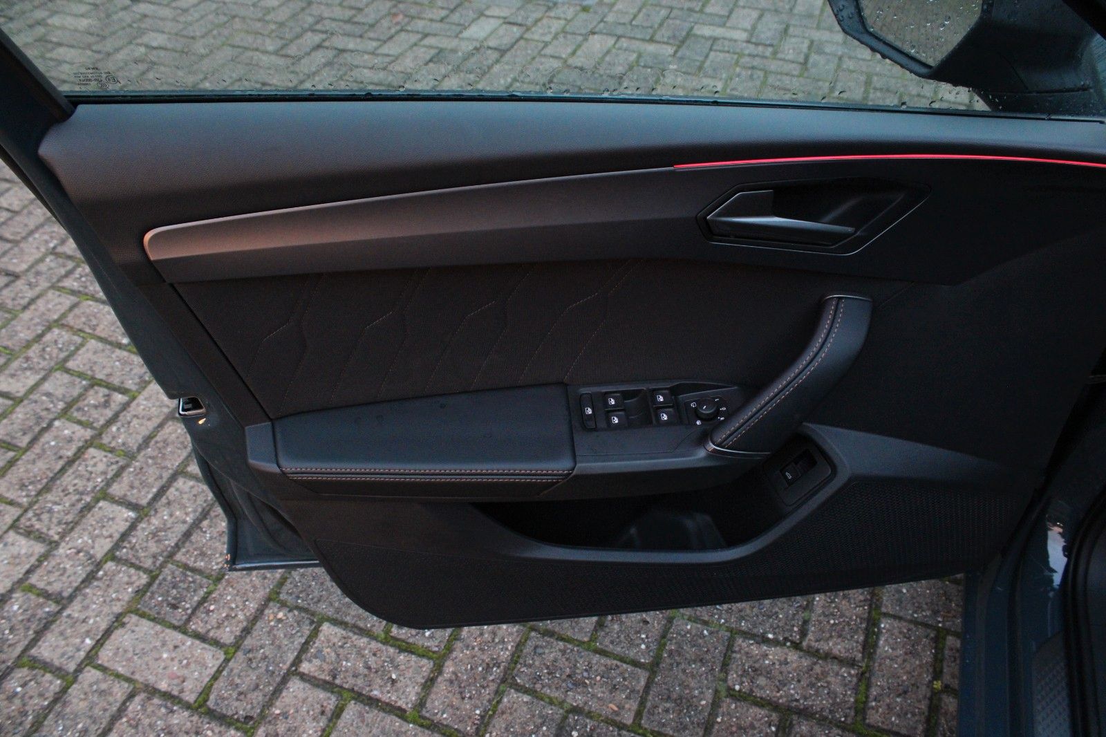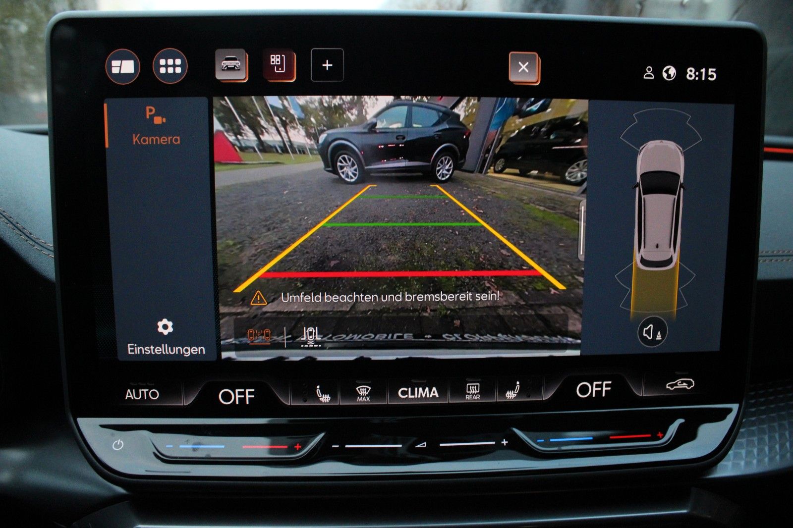 6 Lautsprecher, Abdeckkappen Außenspiegel Dark Aluminium, Airbag Beifahrerseite abschaltbar, Airbag Fahrer-/Beifahrerseite, Außenspiegel elektr. verstell-, heiz- und anklappbar mit Spiegelabsenkung und Welcome Light, Connectivity-Box, Dachhimmel schwarz, Dachreling schwarz, hochglänzend, Differentialsperre (Vorderachse), Einparkhilfe vorn und hinten, Einstiegsleisten vorn beleuchtet, Elektron. Differentialsperre (XDS), Fahrassistenz-System: Fahrprofilauswahl (CUPRA Drive Profile), Fensterheber elektrisch vorn + hinten mit Komfortschaltung, Fensterzierleisten schwarz hochglänzend, Full Link (MirrorLink, Apple CarPlay und Android Auto), Gepäck-/Laderaumboden doppelt, Gepäckraum-Abtrennung (Netz), Gepäckraumabdeckung / Rollo, Gepäckraumbeleuchtung (LED), Handschuhfach mit LED-Beleuchtung, Innenausstattung: Interieurleisten Copper, Isofix-Aufnahmen für Kindersitz an Beifahrersitz und Rücksitz (inkl. i-Size-Kindersitze), Karosserie: 5-türig, Klimaanlage Climatronic 3-Zonen, Kombiinstrument digital (virtual cockpit), Kopf-Airbag-System, Kopfstützen hinten (3-fach), Lendenwirbelstütze Sitz vorn links, verstellbar, Lendenwirbelstütze Sitz vorn rechts, verstellbar, Leseleuchten hinten LED, Leseleuchten vorn LED, Licht- und Sicht-Paket, LM-Felgen, Media-System Plus, Mild-Hybrid 110 kW (Motor 1,5 Ltr. - 110 kW eTSI), Mobile Online Dienste Cupra Connect, Modellpflege, Notrufsystem, Parkbremse elektrisch mit Auto-Hold-Funktion, Radioempfang digital (DAB+), Reifen-Reparaturset, Rücksitzlehne geteilt/klappbar mit Mittelarmlehne und Durchladeeinrichtung, Rücksitzlehnen umklappbar mit Fernentriegelung im Kofferraum, Schadstoffarm nach Abgasnorm Euro 6e, Seitenairbag, Seitenairbag vorn mitte (Central Airbag), Seitenscheiben ab 2.Sitzreihe und Heckscheibe dunkel getönt (Privacy Glass), Sicherheitsgurte vorn höhenverstellbar, Sitz vorn links höhenverstellbar, Sitz vorn rechts höhenverstellbar, Sitzbezug / Polsterung: Stoff/Kunstleder schwarz (Sharp Textil), Sonderlackierung Fiord-Blau, Sonnenblende links mit Spiegel (beleuchtet), Sonnenblende rechts mit Spiegel (beleuchtet), Sportsitze vorn, Steckdose 230V im Gepäckraum, USB-Ladeanschlüsse (2-fach, Typ C) für 2.Sitzreihe, USB-Schnittstelle vorn (2-fach, Typ C), Verzurrösen Koffer-/Laderaum, Voll-LED-Paket, Warnanlage für Sicherheitsgurt-System, Wärmeschutzverglasung