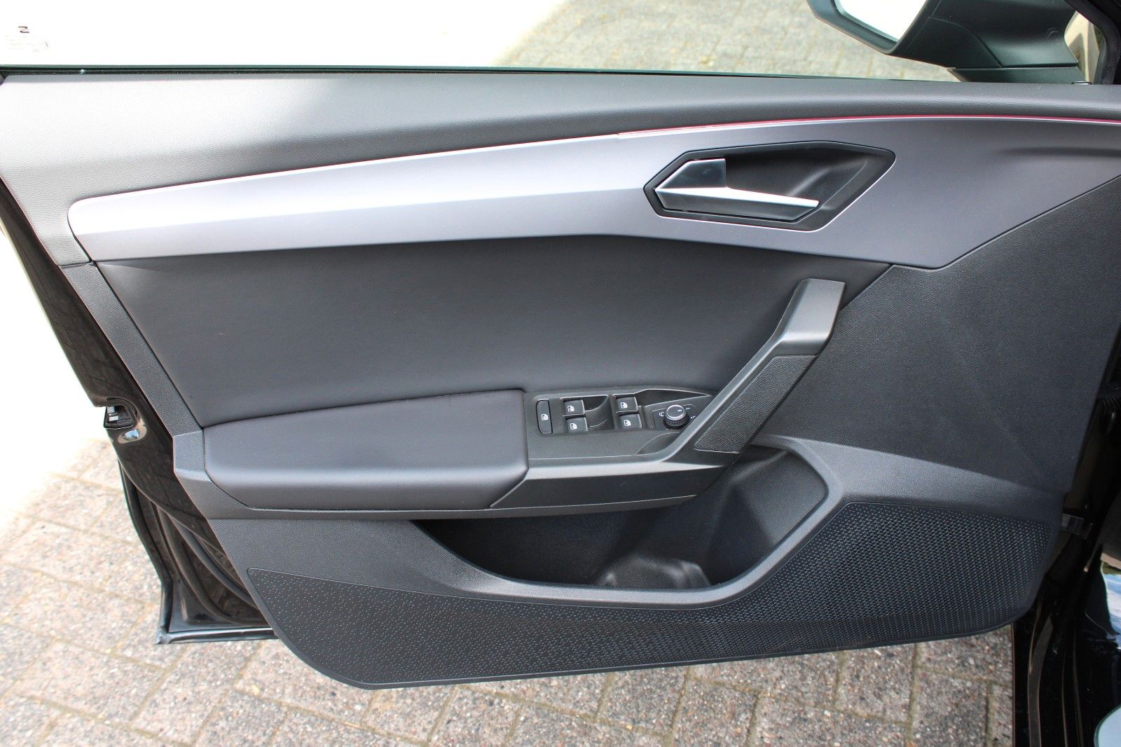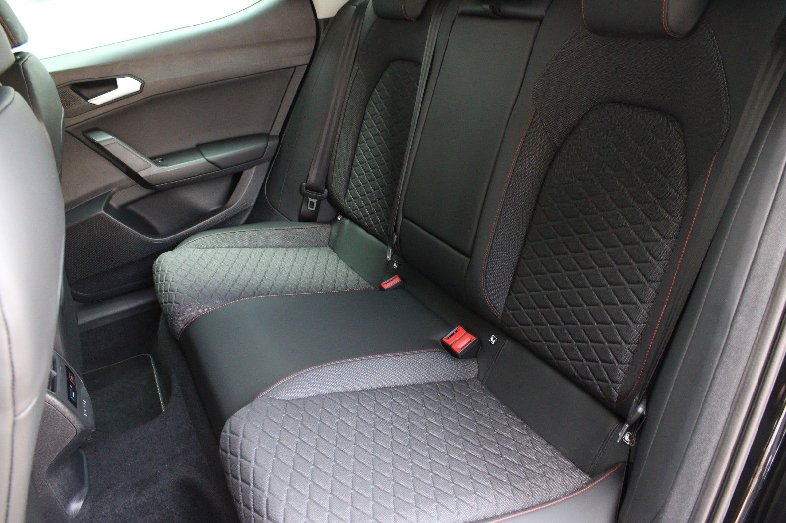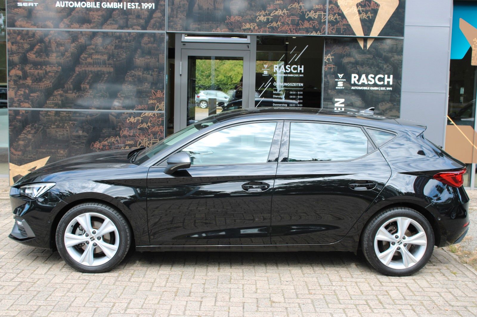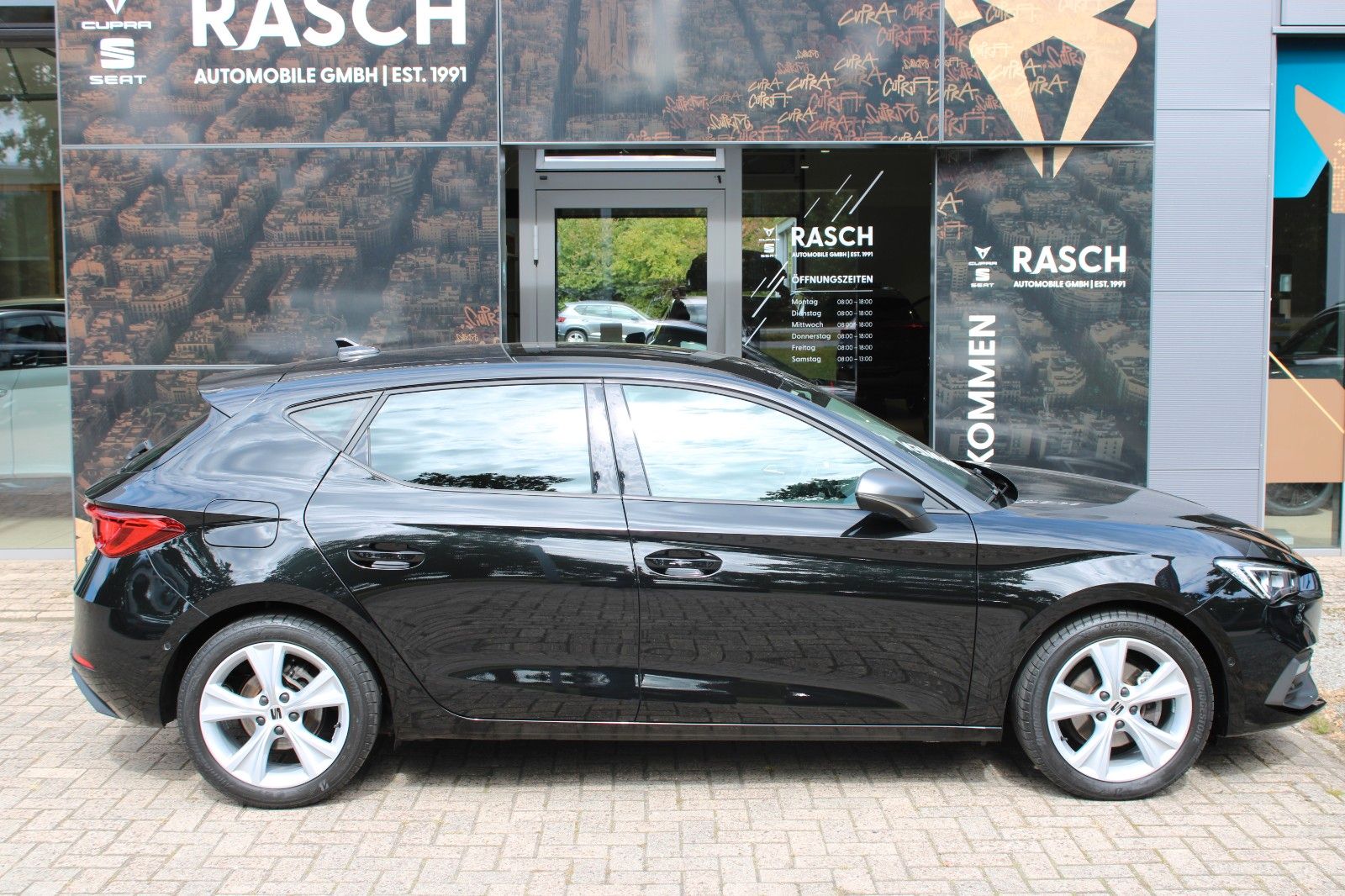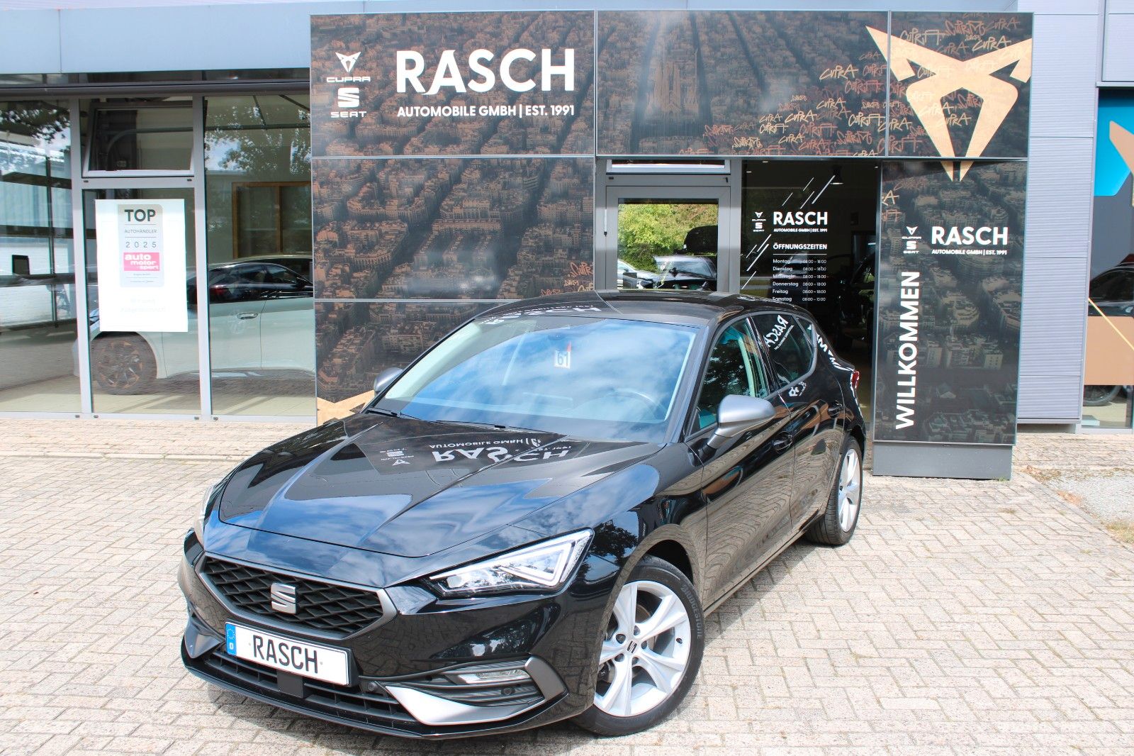 6 Lautsprecher, Ablagetasche an Vordersitzlehnen, Airbag Beifahrerseite abschaltbar, Airbag Fahrer-/Beifahrerseite, Antriebs-Schlupfregelung (ASR), Außenspiegel elektr. verstell-, heiz- und anklappbar mit Spiegelabsenkung, Außenspiegel grau, Blinkleuchten LED in Außenspiegel integriert, Bluetooth-Schnittstelle mit Freisprecheinrichtung integriert, Bordcomputer, Doppeltonhorn, Einstiegsleisten beleuchtet, Elektron. Querdifferentialsperre (XDS), Fahrassistenz-System: Fahrprofilauswahl (SEAT Drive Profile), Fahrassistenz-System: Müdigkeitserkennung, Fahrassistenz-System: Spurhalteassistent, Fahrassistenz-System: Umfeldbeobachtungssystem (Front assist) mit City-Notbremsfunktion, Fensterheber elektrisch vorn + hinten mit Komfortschaltung, Gepäckraumabdeckung / Rollo, Handschuhfach beleuchtet, Heckleuchten Voll-LED mit dynamischem Lichtband (Infinite Light), Innenraumlicht-Paket LED, Isofix-Aufnahmen für Kindersitz, Karosserie: 5-türig, Klimaanlage Climatronic 3-Zonen, Kofferraumbeleuchtung, Kombiinstrument digital (virtual cockpit), Kopf-Airbag-System, Lendenwirbelstütze Sitz vorn links, verstellbar, Lendenwirbelstütze Sitz vorn rechts, verstellbar, Lenkrad (Sport/Leder) mit Multifunktion, LM-Felgen, Mild-Hybrid 110 kW (Motor 1,5 Ltr. - 110 kW eTSI ACT), Mobile Online Dienste Seat Connect, Nebelscheinwerfer LED mit Abbiegelicht, Notrufsystem, Otto-Partikelfilter (OPF), Parkbremse elektrisch mit Auto-Hold-Funktion, Radioempfang digital (DAB+), Reifen-Reparaturset, Reifenkontroll-Anzeige, Rücksitzlehne geteilt/klappbar (1/3-2/3), Schadstoffarm nach Abgasnorm Euro 6d-TEMP, Schalt-/Wählhebelgriff Leder, Seitenairbag, Seitenscheiben hinten und Heckscheibe abgedunkelt, Sitz vorn links höhenverstellbar, Sitz vorn rechts höhenverstellbar, Sitzbezug / Polsterung: Stoff, Sport-Fahrwerk, Sport-Komfortsitze vorn, Start/Stop-Anlage, Steckdose (12V-Anschluß) vorn, Stoßfänger FR-Design, USB-Schnittstelle vorn (2-fach, Typ C), Verzurrösen Koffer-/Laderaum, Warnanlage für Sicherheitsgurt-System, Wärmeschutzverglasung