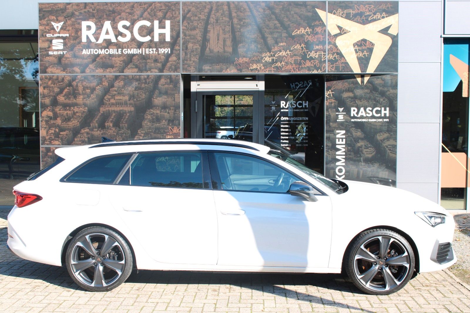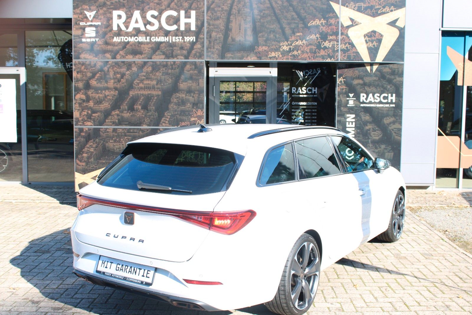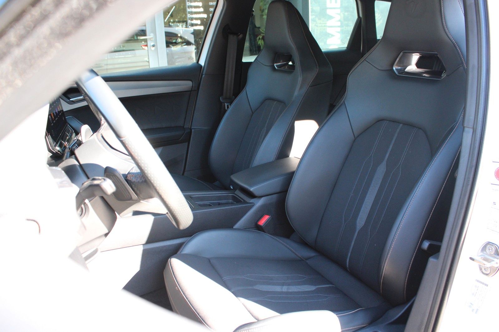 6 Lautsprecher, Airbag Beifahrerseite abschaltbar, Airbag Fahrer-/Beifahrerseite, Akustischer Fußgängerschutz, Außensound (e-sound / AVAS), Ambiente-Beleuchtung Smart Ambient Light, Antriebs-Schlupfregelung (ASR), Audio-Navigationssystem mit Touchscreen Farbbildschirm, Außenspiegel elektr. verstell-, heiz- und anklappbar mit Spiegelabsenkung und Welcome Light, Blinkleuchten LED in Außenspiegel integriert, Dachreling schwarz, hochglänzend, Doppeltonhorn, Dynamic-Paket, Einparkhilfe hinten, Einstiegsleisten (Aluminium) vorn, beleuchtet, Elektron. Differentialsperre (XDS), Fahrassistenz-System: Fahrprofilauswahl (CUPRA Drive Profile), Fahrassistenz-System: Pre-Crash-System, Fensterheber elektrisch vorn + hinten mit Komfortschaltung, Fensterzierleisten schwarz hochglänzend, Gepäckraumabdeckung / Rollo, Heckleuchten LED mit dynamischem Blinklicht, Heckleuchten Voll-LED mit dynamischem Lichtband (Infinite Light), Hybrid 180 kW (Motor 1,4 Ltr. - 110 kW TSI), Induktionsladeschale für Smartphone, Isofix-Aufnahmen für Kindersitz an Rücksitz, Karosserie: 5-türig, Klimaanlage Climatronic 3-Zonen, Kombiinstrument digital (virtual cockpit), Kopf-Airbag-System, Laderaumboden variabel und herausnehmbar, Lendenwirbelstütze Sitz vorn links, verstellbar, Lendenwirbelstütze Sitz vorn rechts, verstellbar, Licht- und Sicht-Paket, LM-Felgen, Mittelarmlehne hinten, Mittelkonsole vorn mit Mittelarmlehne, Becherhalter, Ablagebox und Luftausströmer hinten, Mobile Online Dienste Cupra Connect, Notrufsystem, Parkbremse elektrisch, Radioempfang digital (DAB+), Reifen-Reparaturset, Rücksitzlehne geteilt/klappbar (1/3-2/3), Rücksitzlehnen umklappbar mit Fernentriegelung im Kofferraum, Schadstoffarm nach Abgasnorm Euro 6d, Seitenairbag, Seitenairbag vorn mitte (Central Airbag), Seitenscheiben hinten und Heckscheibe abgedunkelt, Sitz vorn links höhenverstellbar, Sitz vorn rechts höhenverstellbar, Sitzbezug / Polsterung: Stoff, Sonnenblende links mit Spiegel (beleuchtet), Sonnenblende rechts mit Spiegel (beleuchtet), Sport-Schalensitze vorn mit integrierten Kopfstützen, Start/Stop-Anlage, Steckdose (12V-Anschluß) im Koffer-/Laderaum, USB-Ladeanschlüsse (2-fach, Typ C) für 2.Sitzreihe, USB-Schnittstelle vorn (2-fach, Typ C), Verzurrösen Koffer-/Laderaum, Warnanlage für Sicherheitsgurt-System, Wärmeschutzverglasung.